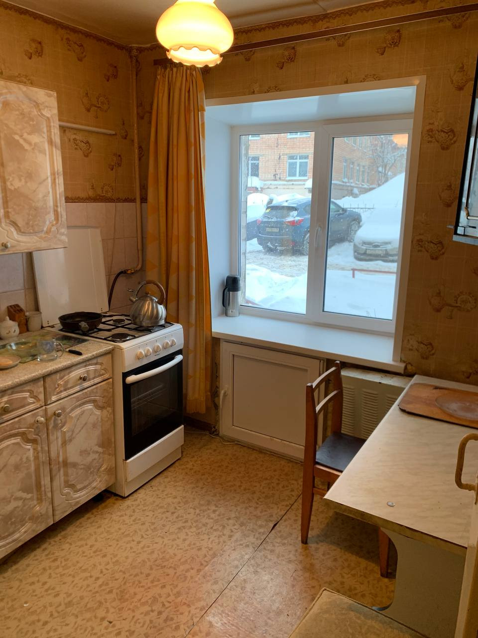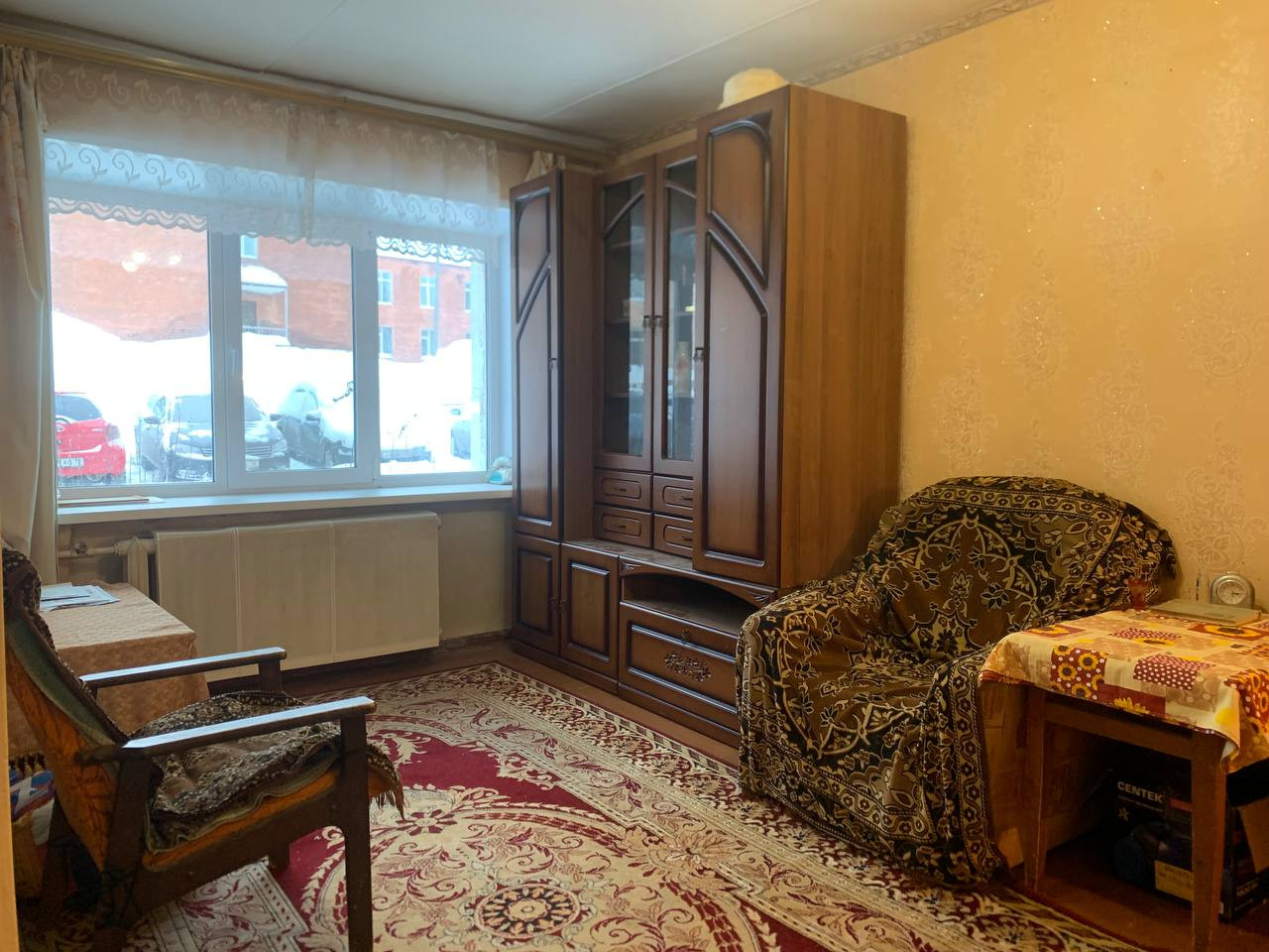 - Два окна выходят на улицу оба пластиковые. Стены толстые, зимой очень тепло.