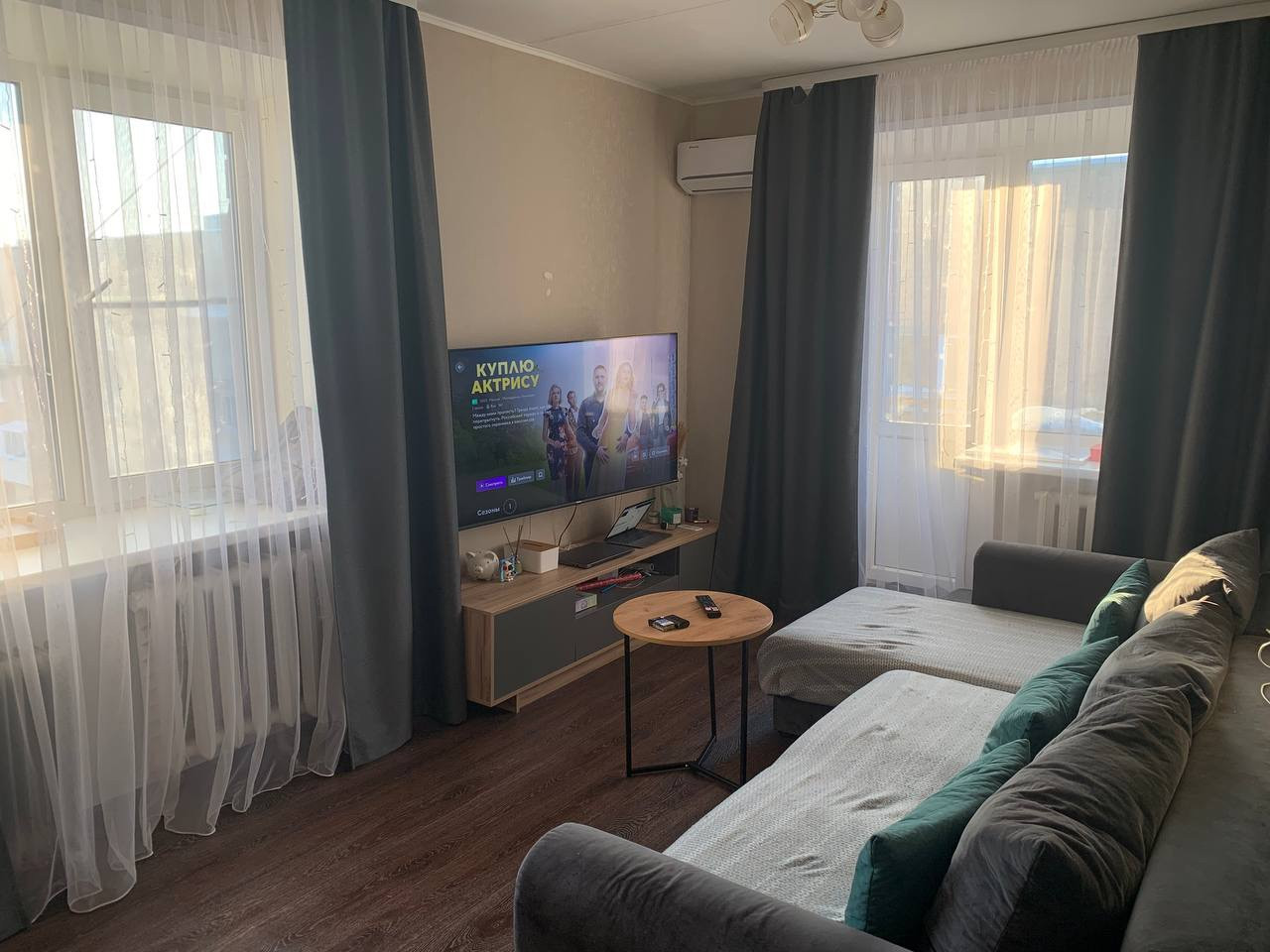 Один собственник. В квартире частично сделан ремонт: пластиковые окна, натяжной потолок, установлен кондиционер, новая входная дверь с зеркалом в пол. Мебель, техника по договоренности. Новые холодильник Haier и стиральная машинка Gorenje. Техника на гарантии. Новая кровать с матрасом. Заезжай и живи.