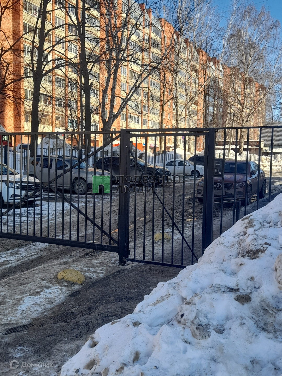 Двор огороженный, въезд во двор через шлагбаум, большая парковка.