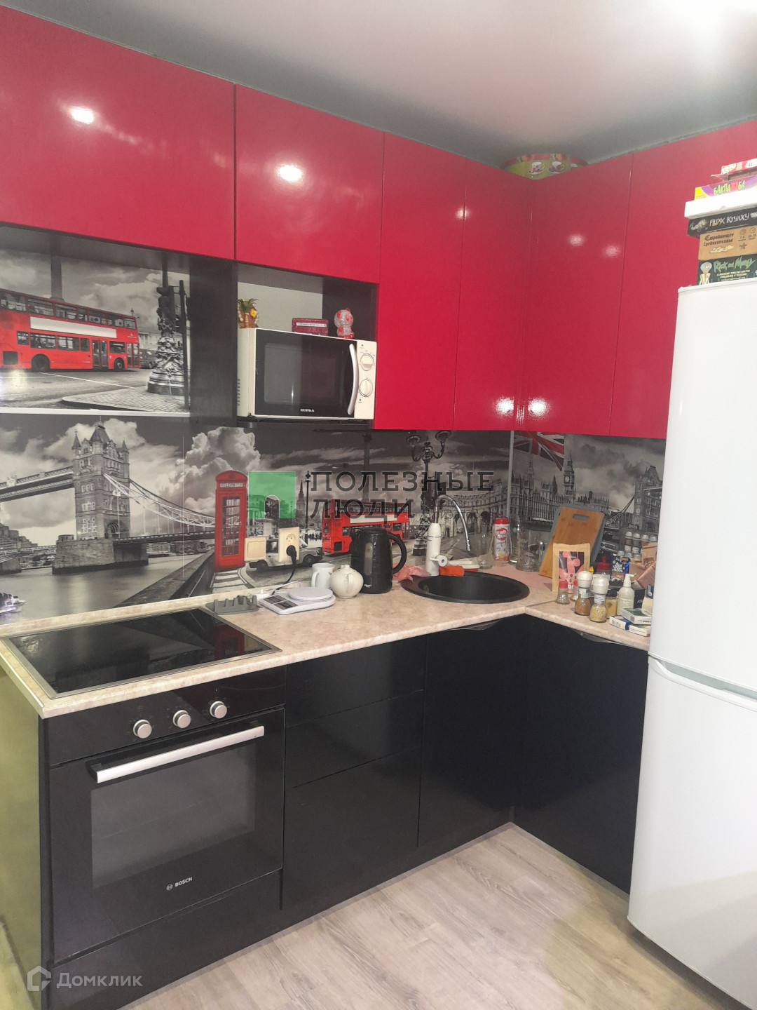 Останется кухонный гарнитур со встроенной техникой, шкаф-купе. Остальная мебель по договоренности.