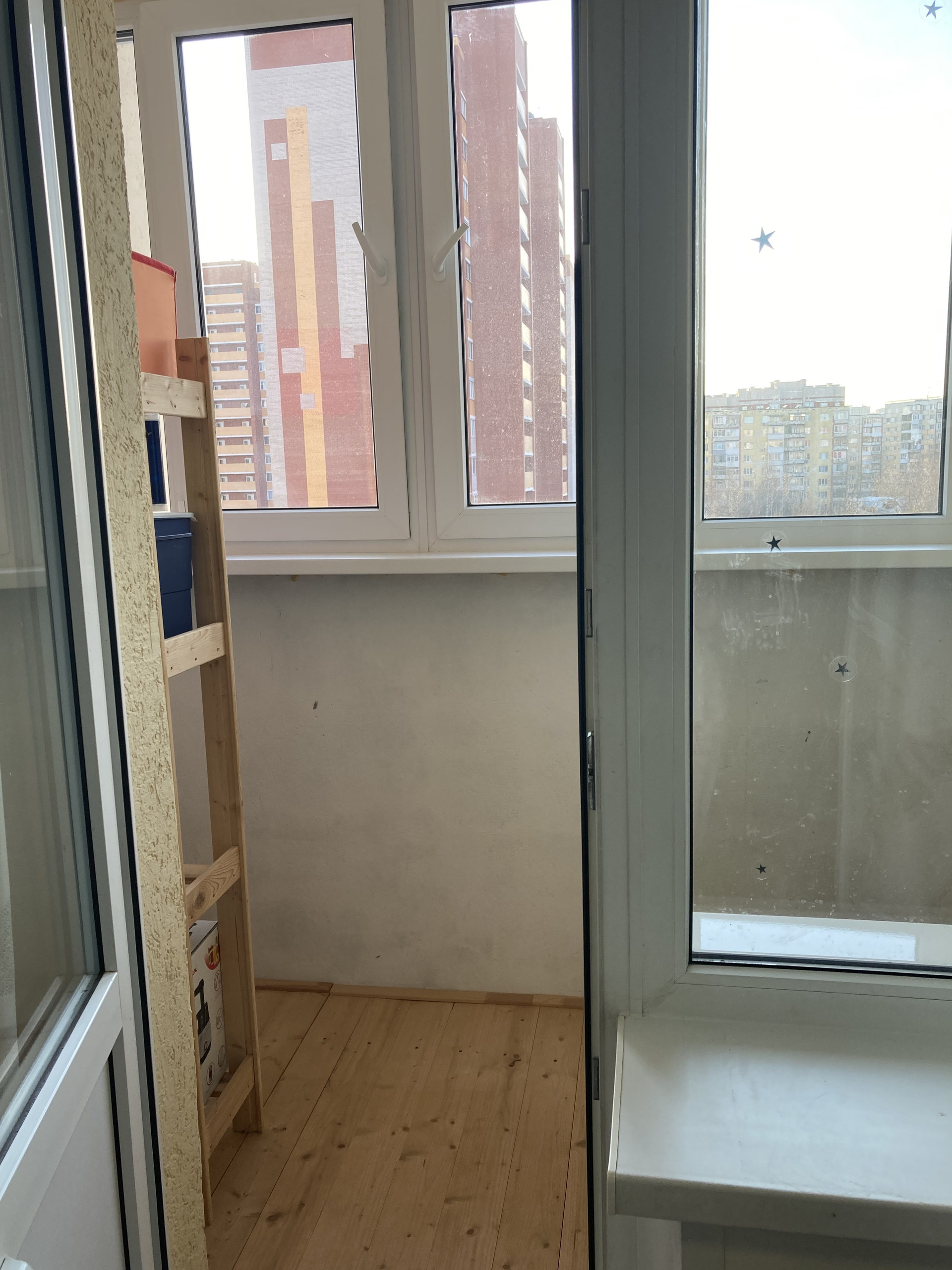 - Лоджия застеклена, пол из дерева.