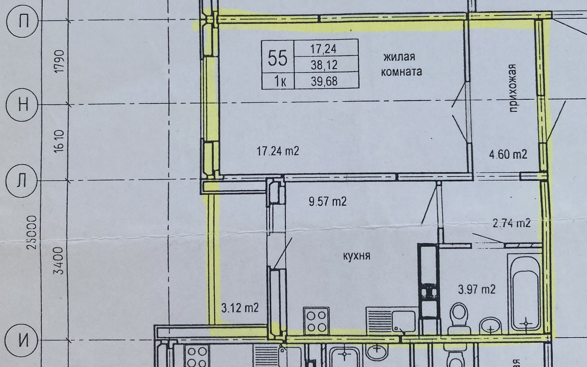 Общая площадь 38,12 кв.м. + лоджия 3,12 кв.м.