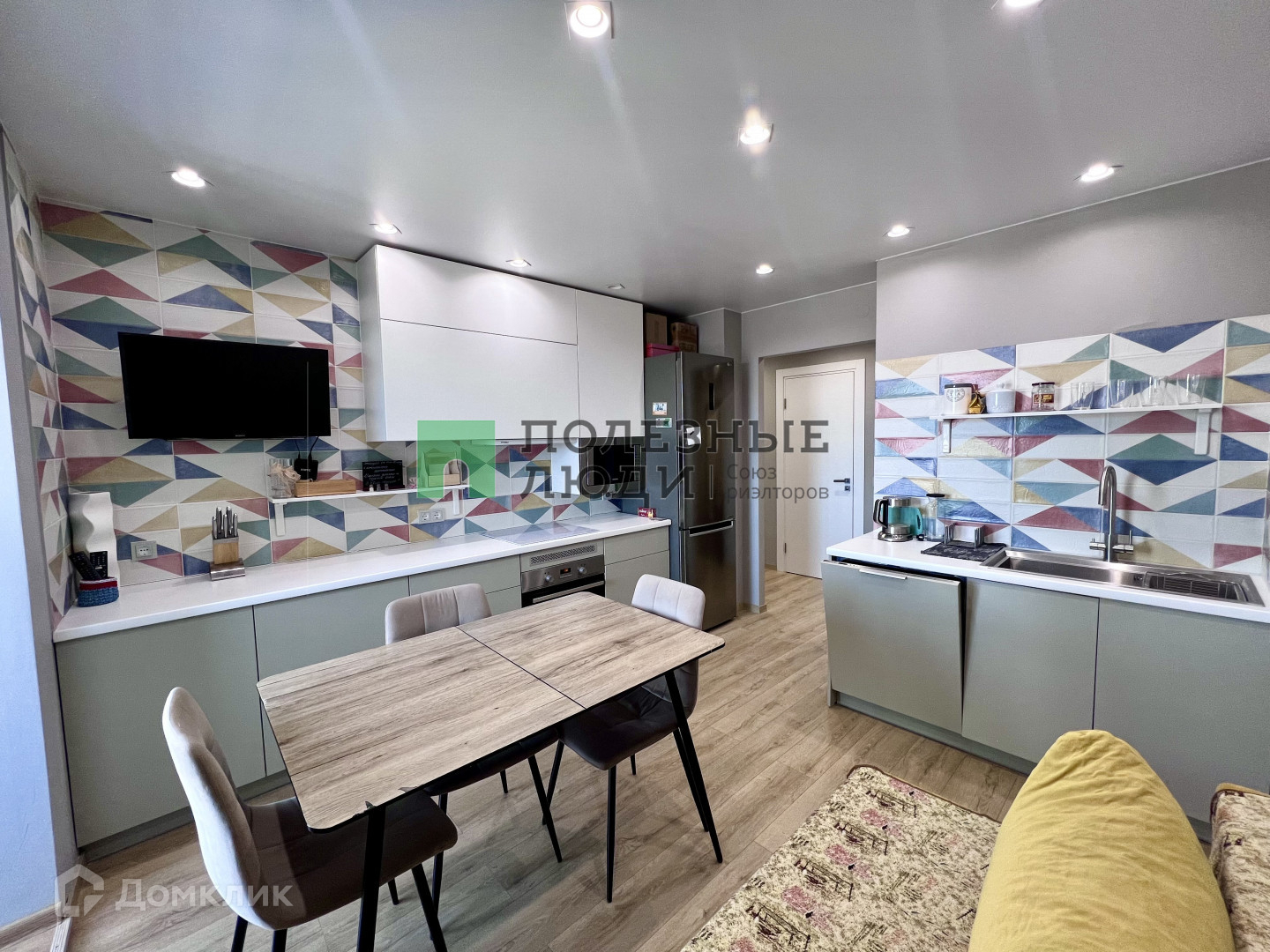 В продаже двухкомнатная квартира с большой кухней в дизайнерском ремонте.