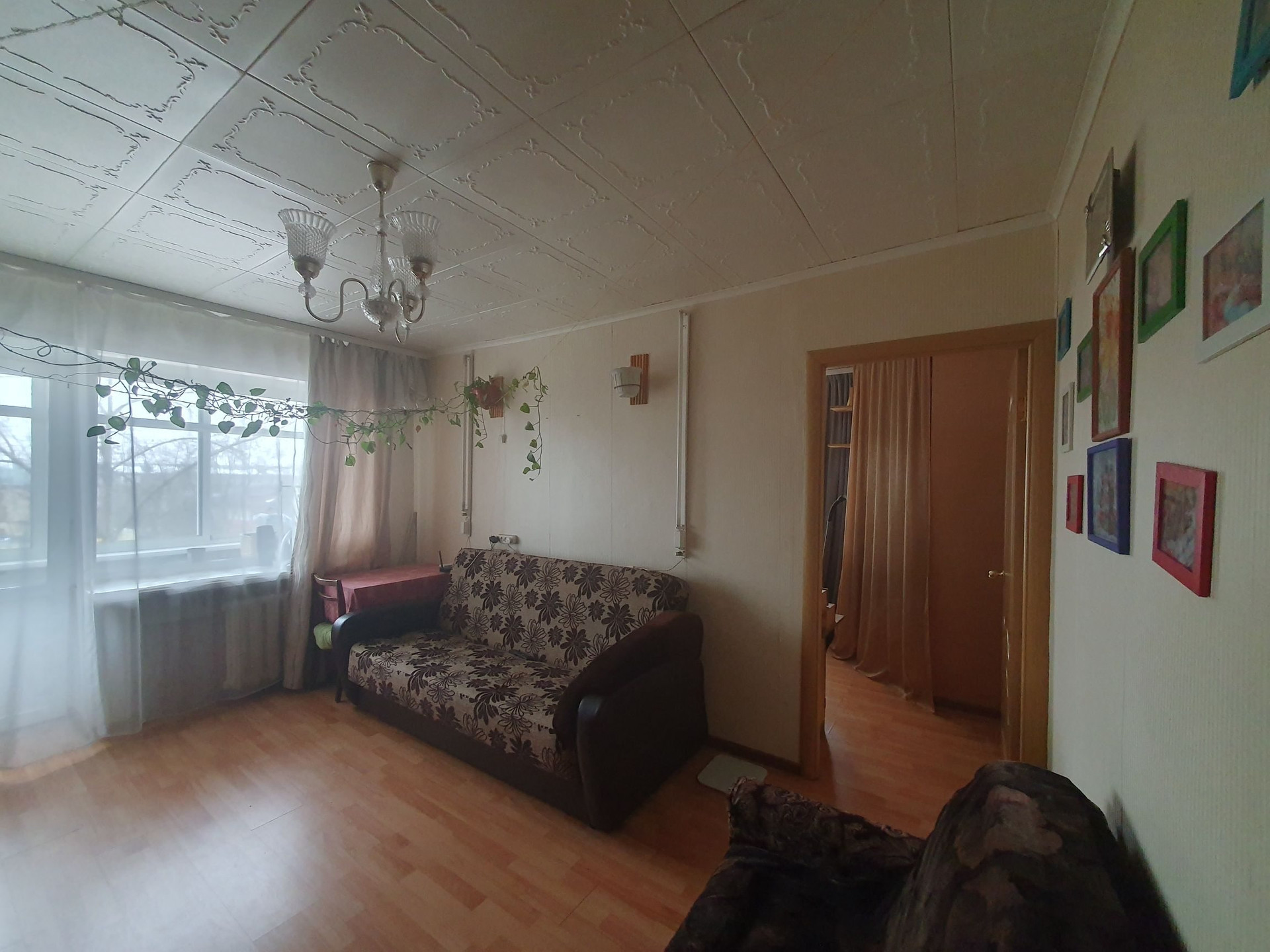 В квартире удобная планировка, пластиковые окна, напольное покрытие-ламинат, балкон застеклён раздвижным алюминиевым профилем.