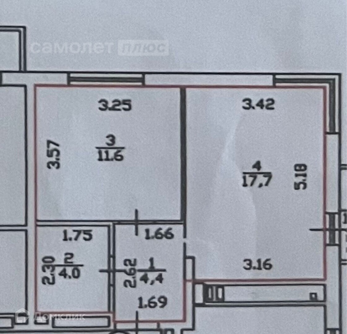 Общая площадь 37.7 м2