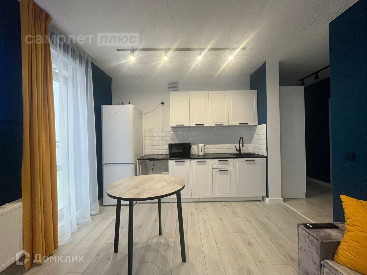Потолок выполнен из декоративной штукатурки. На полу качественный ламинат, в сан узле плитка до потолка, ровные стены, которые также можно перекрасить в любой момент в любой цвет, антивандальное покрытие, качественные межкомнатные двери, трекерное дизайнерское освещение.