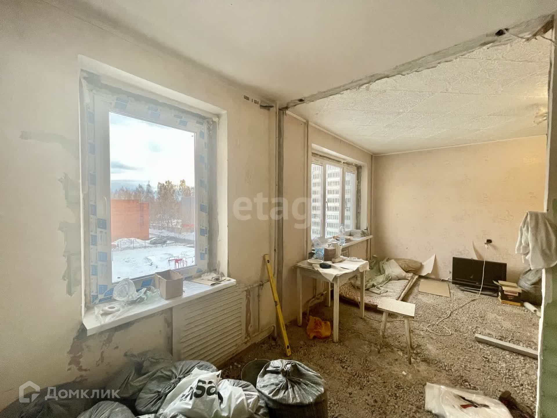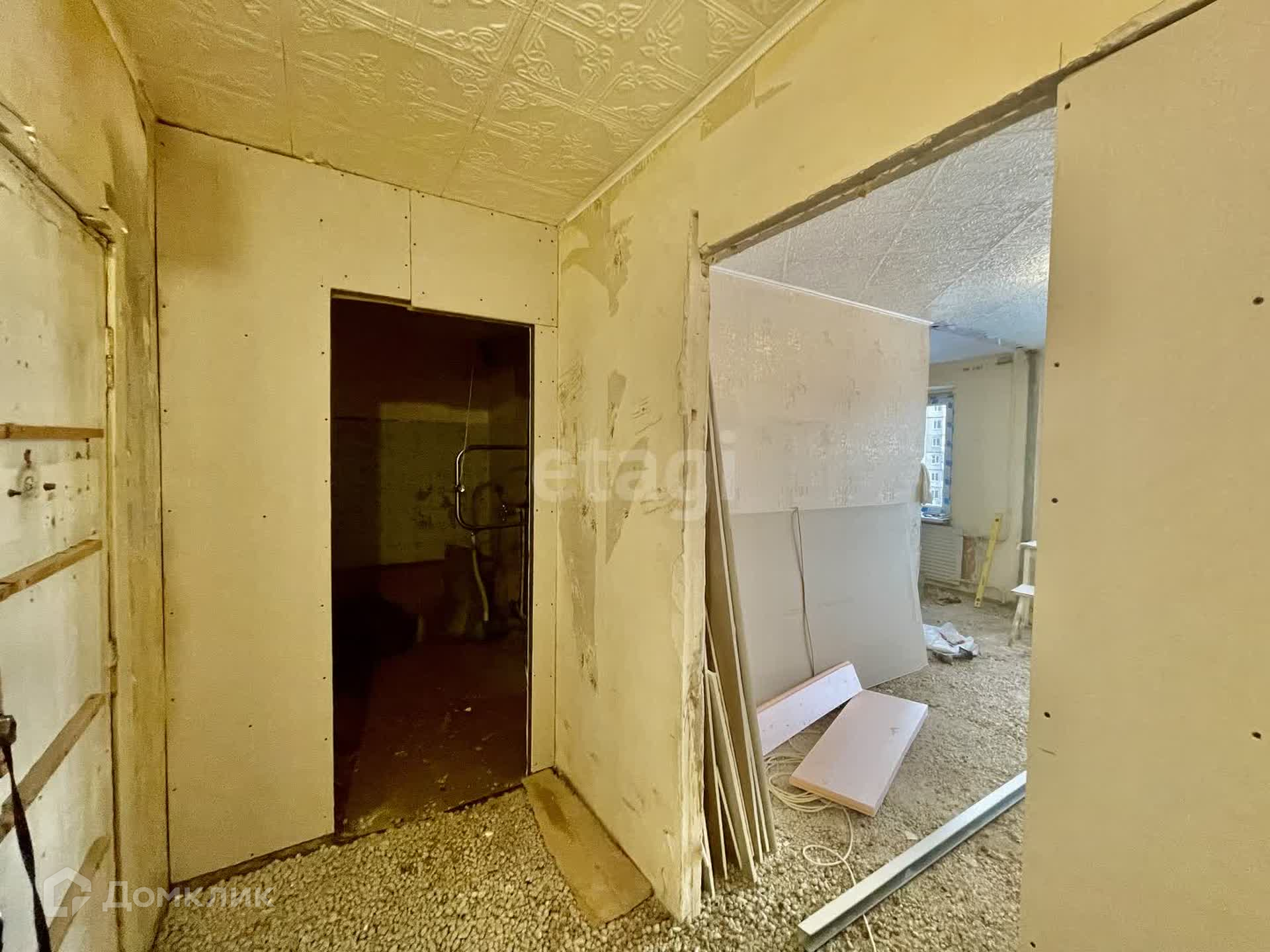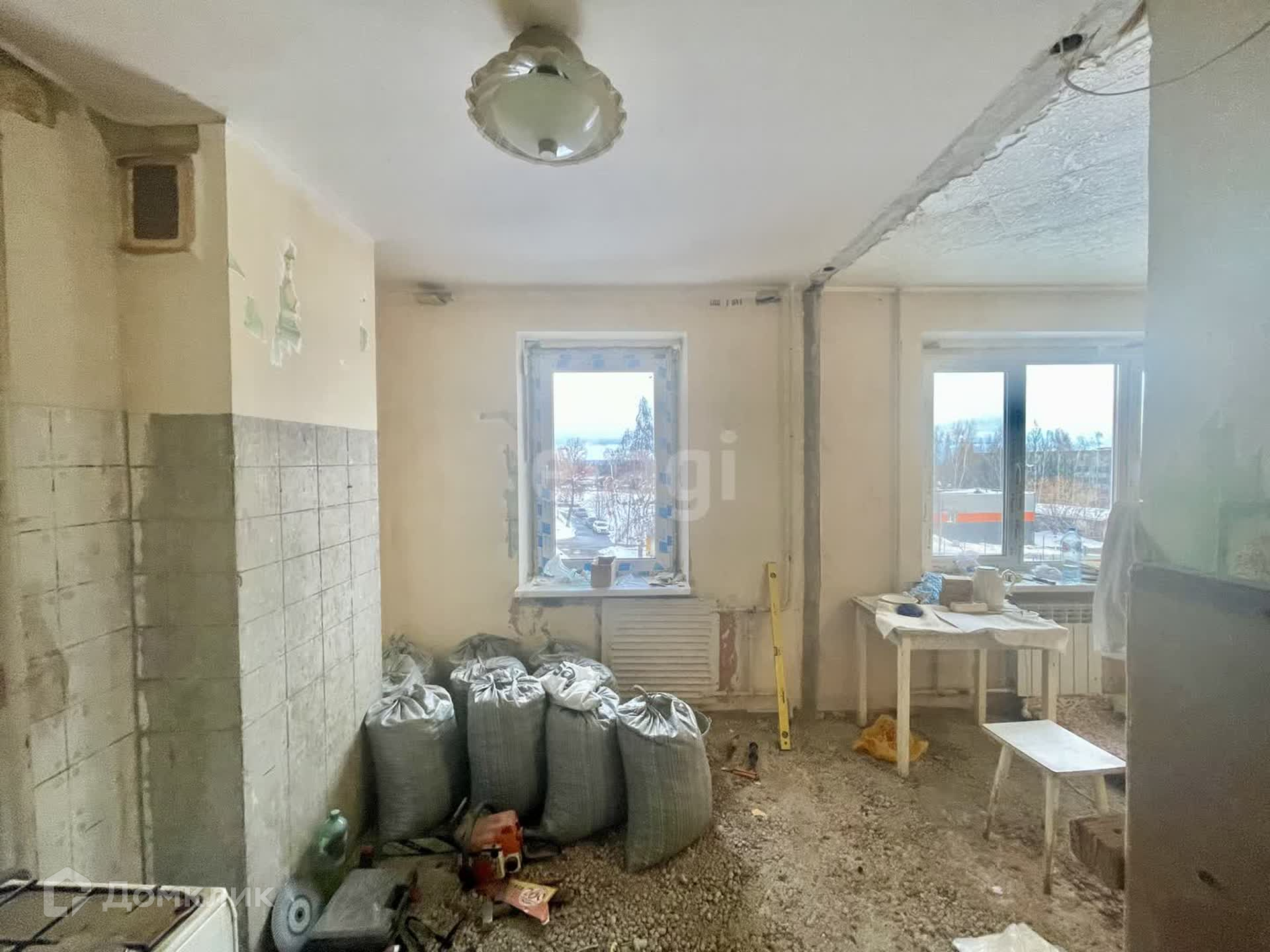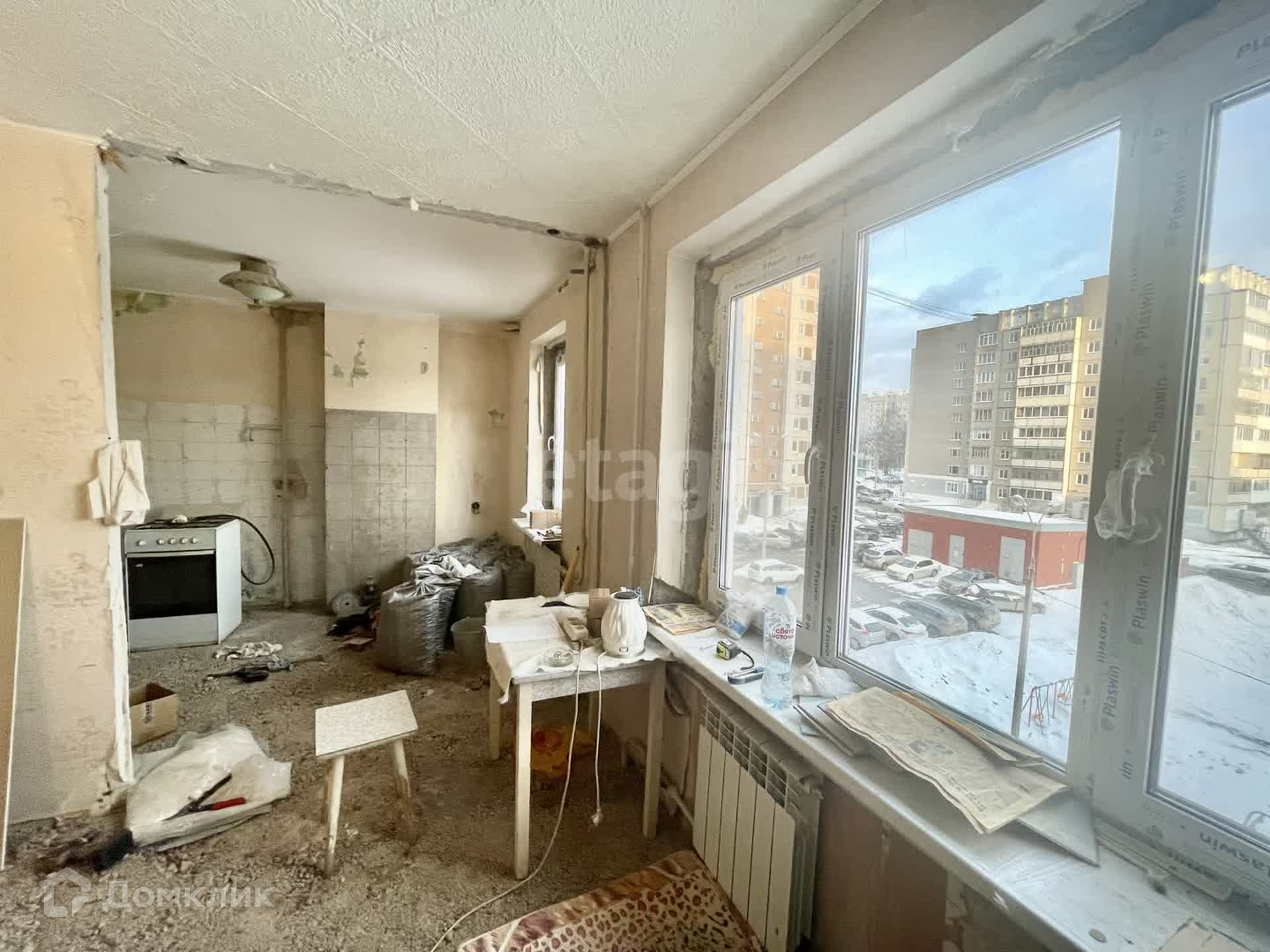 В квартире уже сделаны все грязные работы: произведен демонтаж стен, что позволило расширить пространство и создать более функциональную планировку кухни-гостиной.
