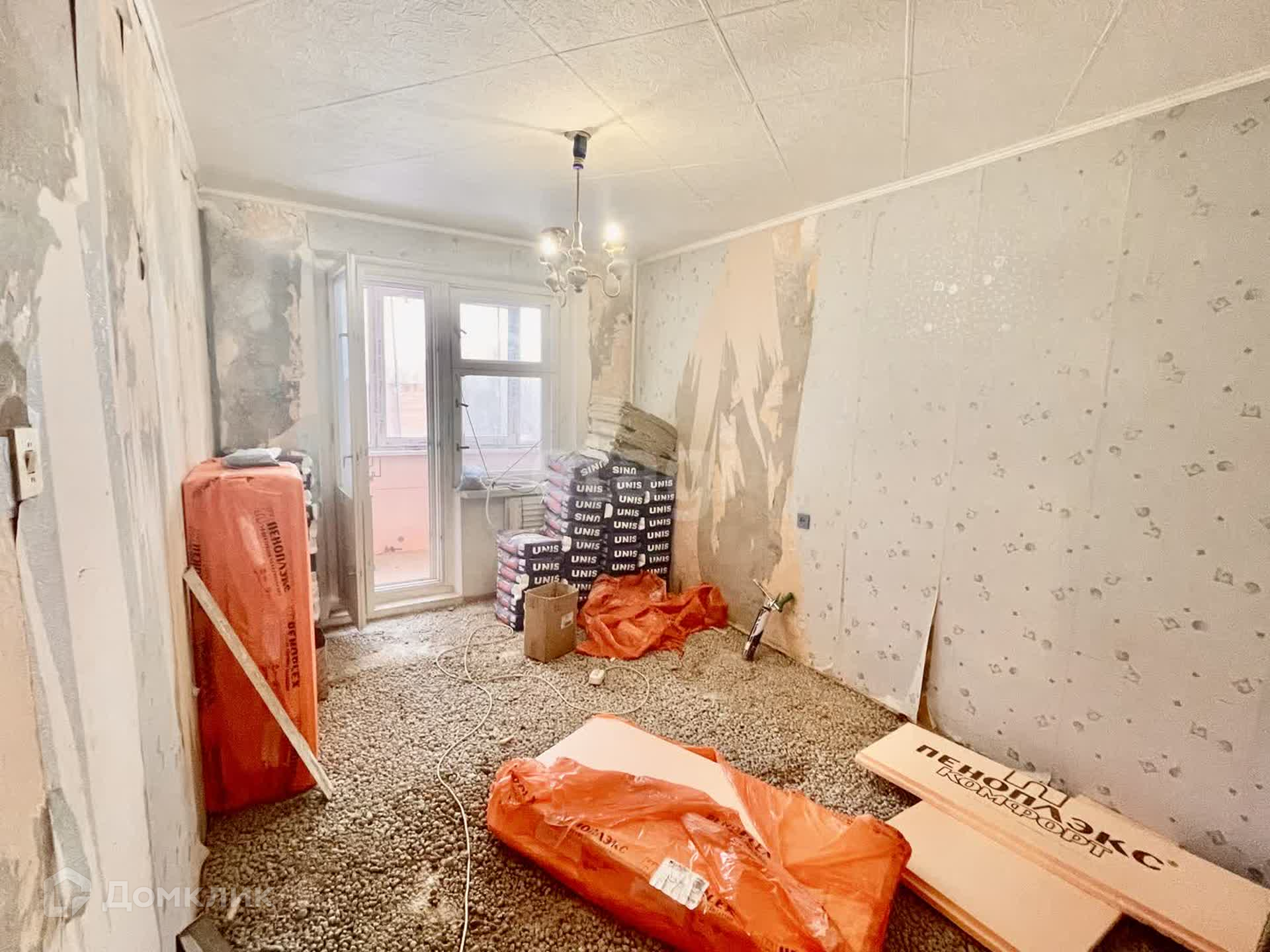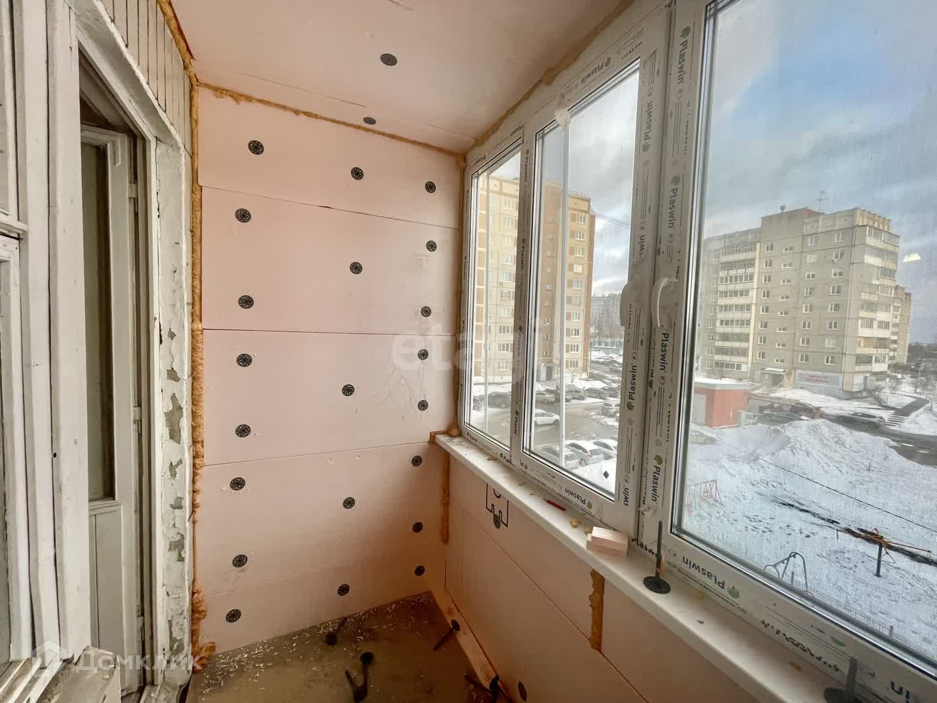 Лоджия застеклена, пол выровнен и утеплен пеноплексом.