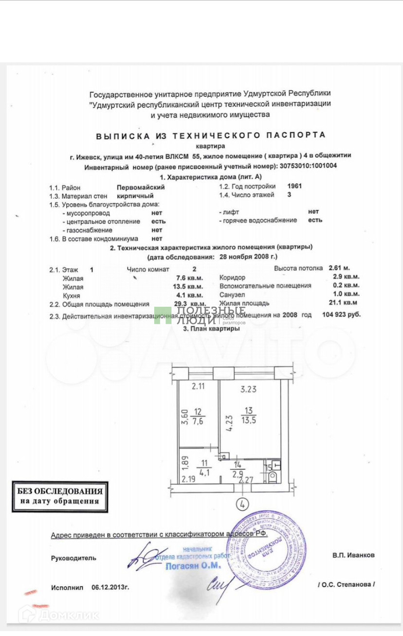 2-комнатная квартира, 29.3 м2, этаж 1 / 3, на продажу в Ижевске, улица 40 лет ВЛКСМ, 55