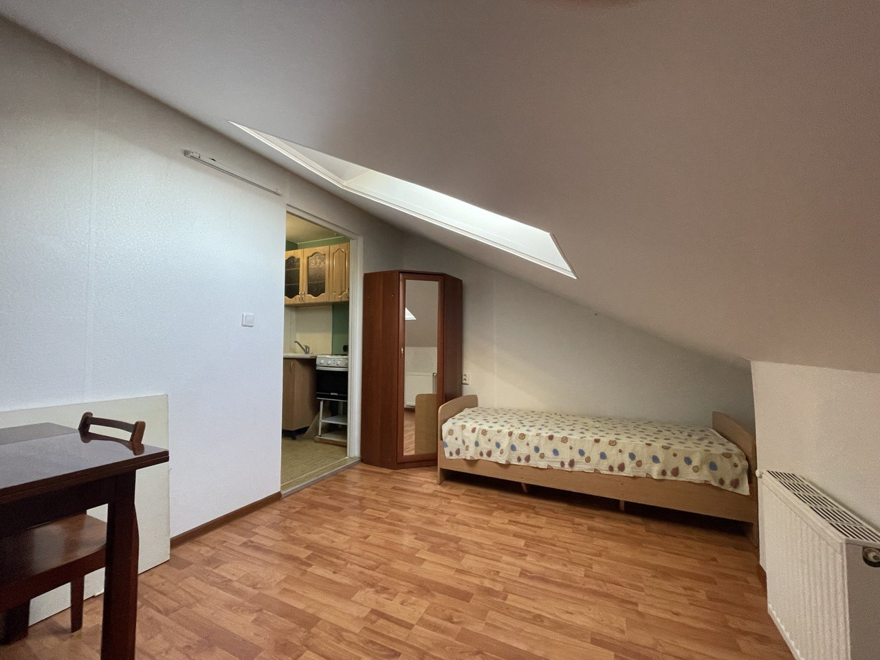 Квартира на мансардном этаже, чистая, ухоженная. Есть вся необходимая мебель и техника для комфортной жизни (кроме стиральной холодильника).