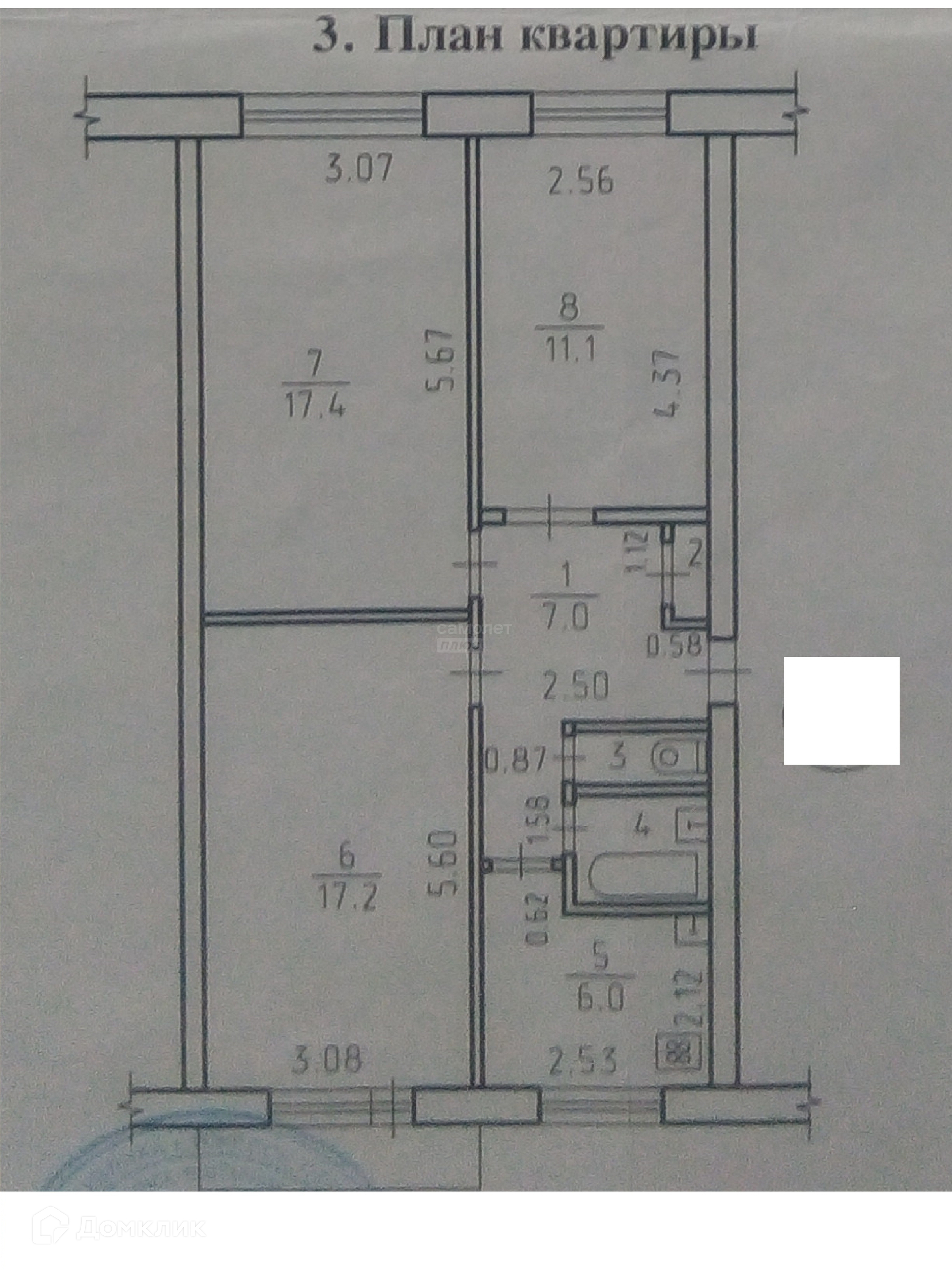 Общая площадь 62.6 м2