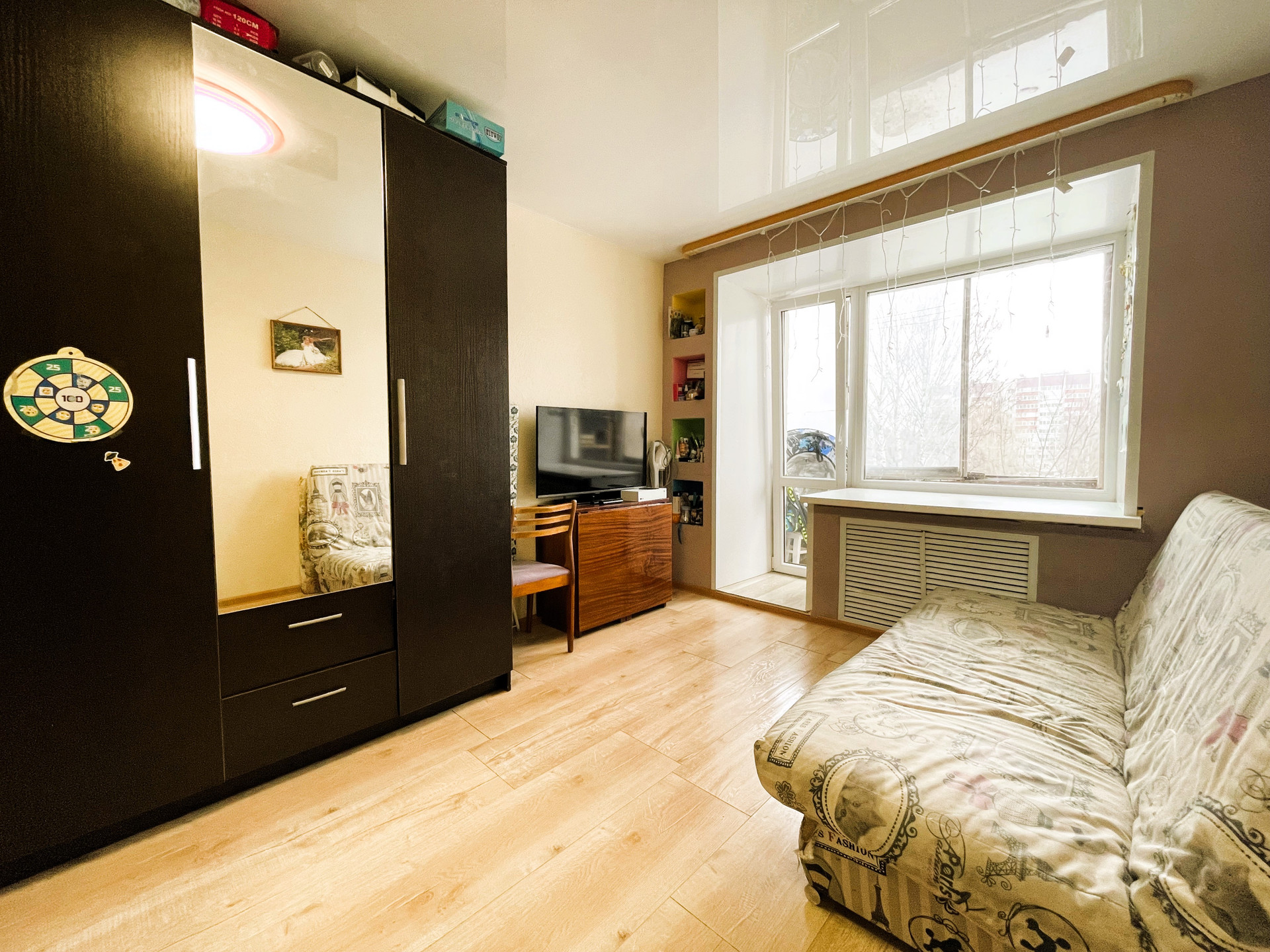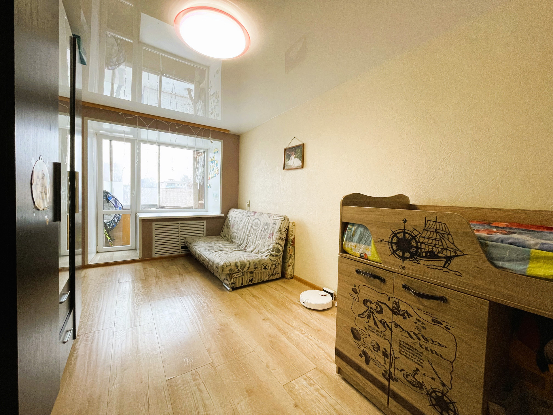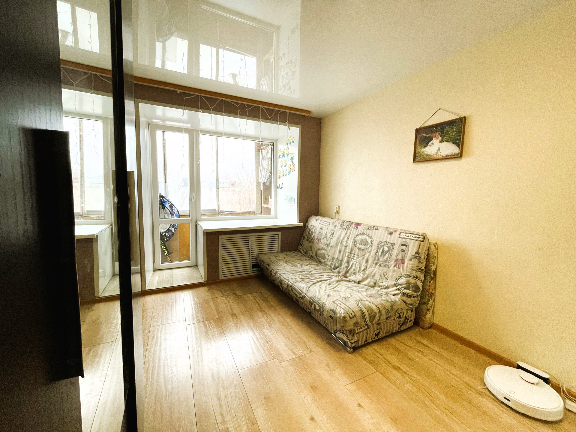 + В комнате на полу качественный ламинат, оконный профиль поменян на пластиковый стеклопакет