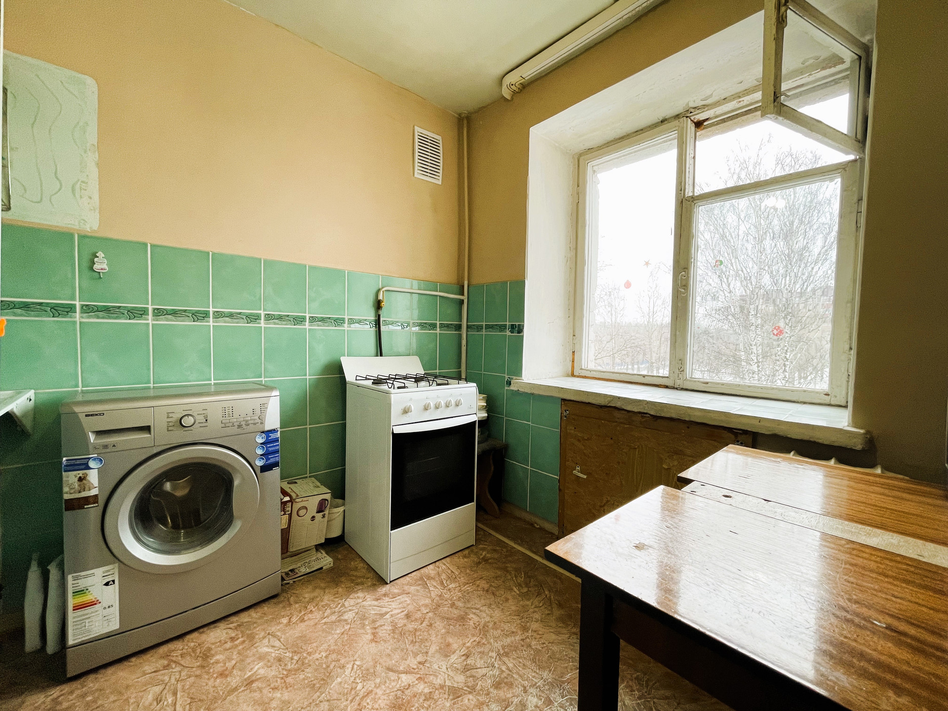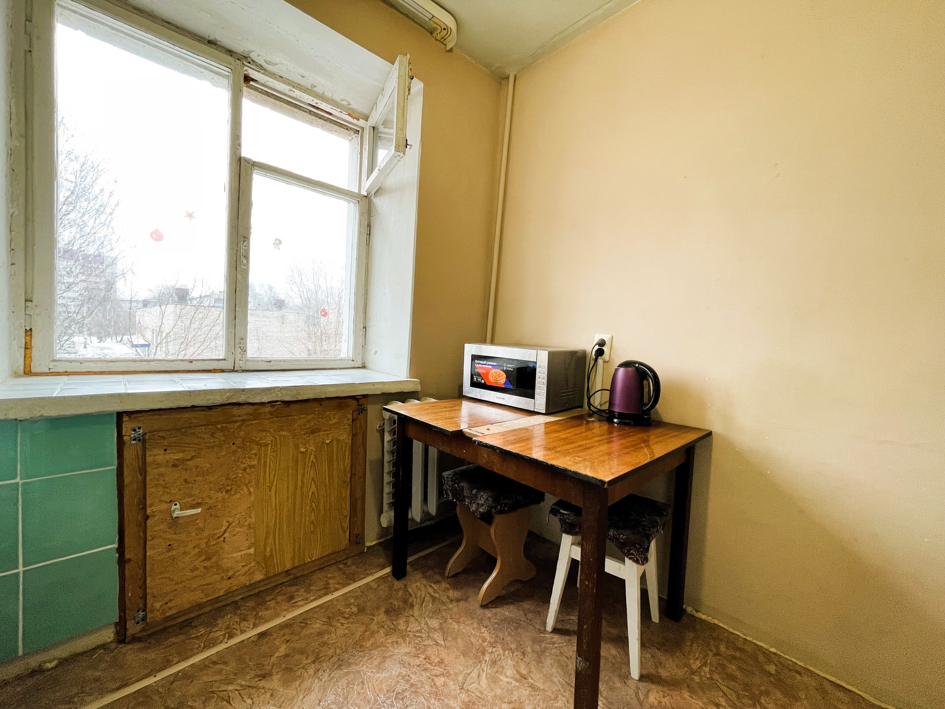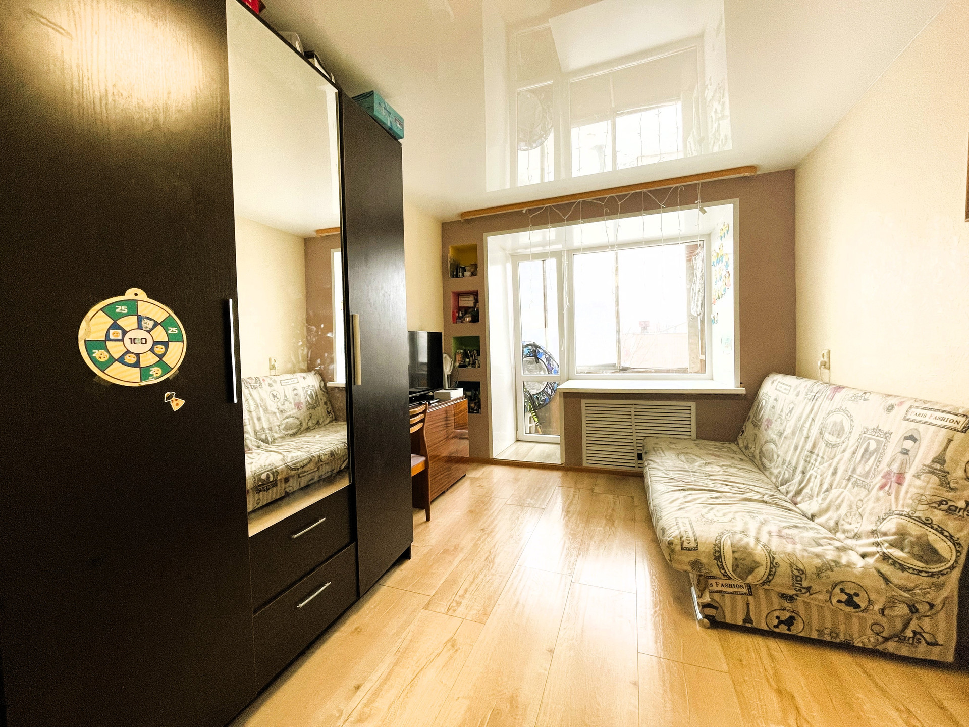 + В комнате на полу качественный ламинат, оконный профиль поменян на пластиковый стеклопакет