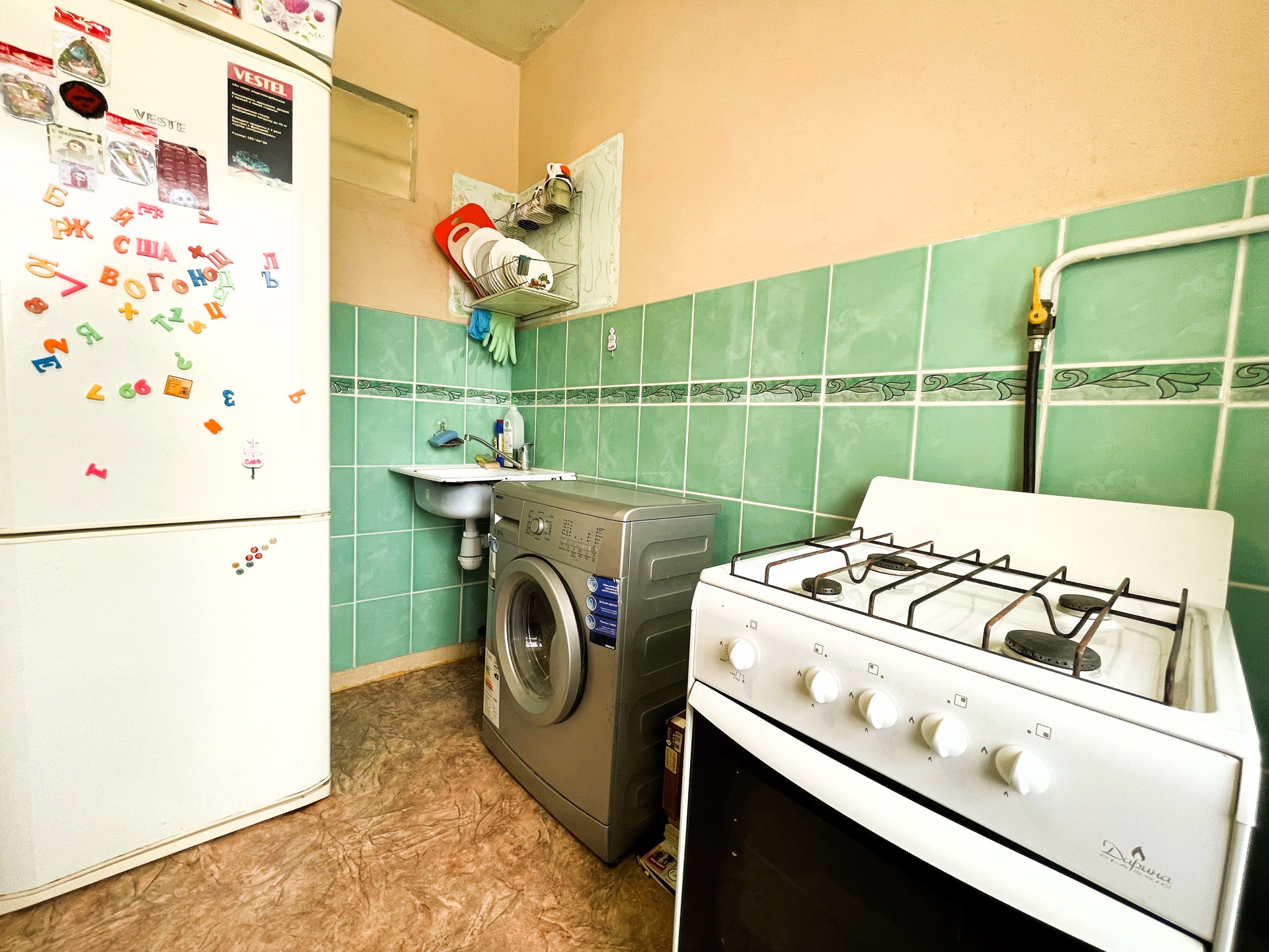 + в сан узле и в кухне на стене плитка