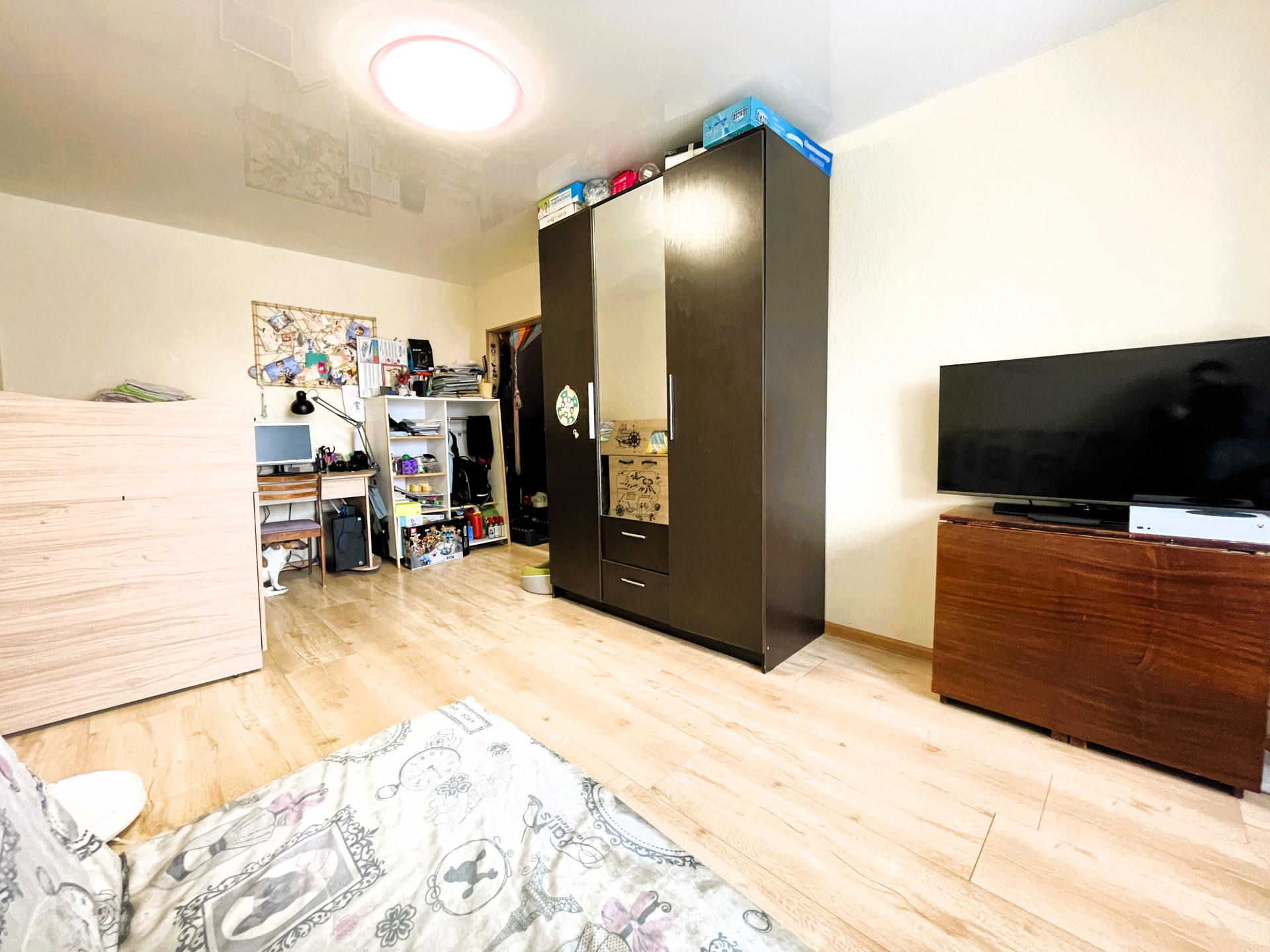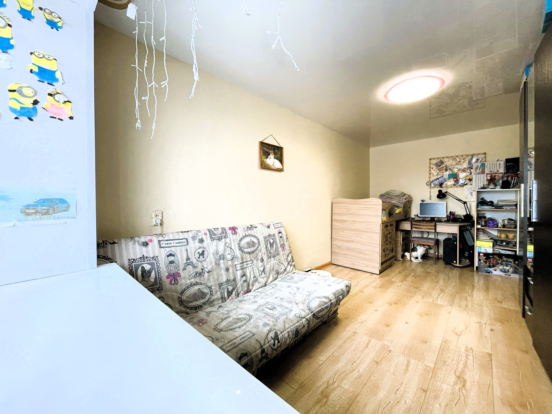 + В комнате и в прихожей натяжной потолок