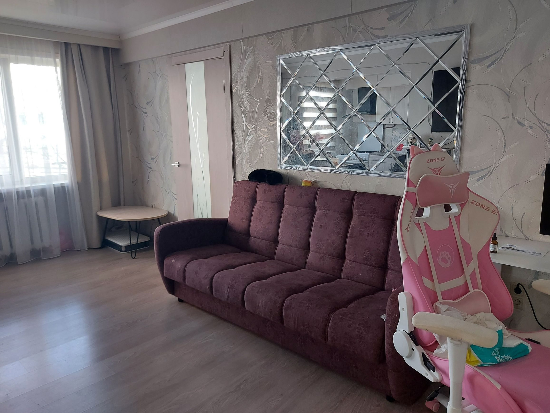 Квартира в отличном состоянии - заезжай и живи! Зимой - тепло, летом в жару - прохладно и очень тихо (соседей и уличный шум не слышно). Подъезд чистый, отремонтированный, соседи хорошие. Рядом с подъездом большая парковка (всегда есть свободное место).