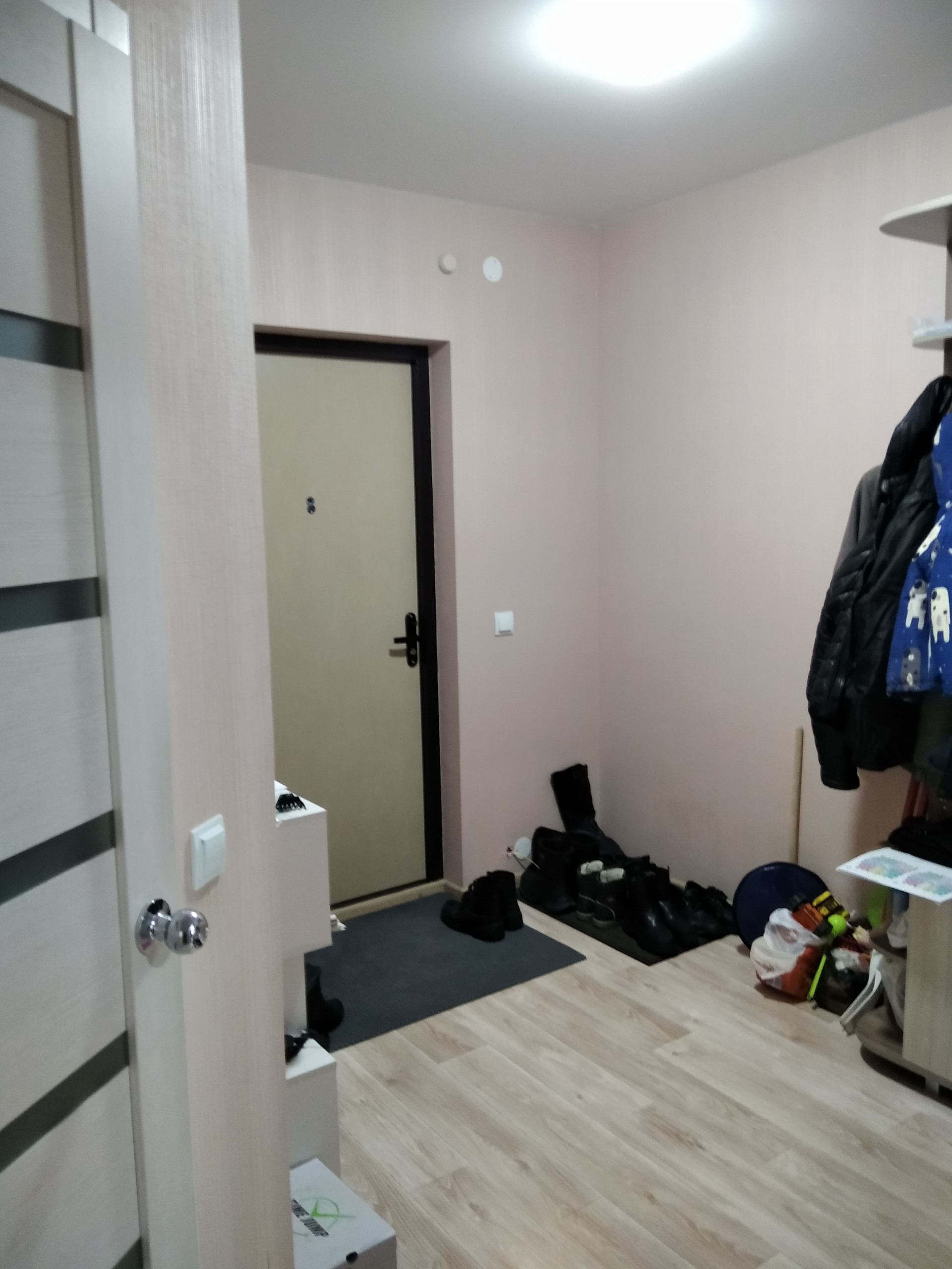 Пол в комнатах - ламинат, в ванной - плитка, на кухне - линолеум,