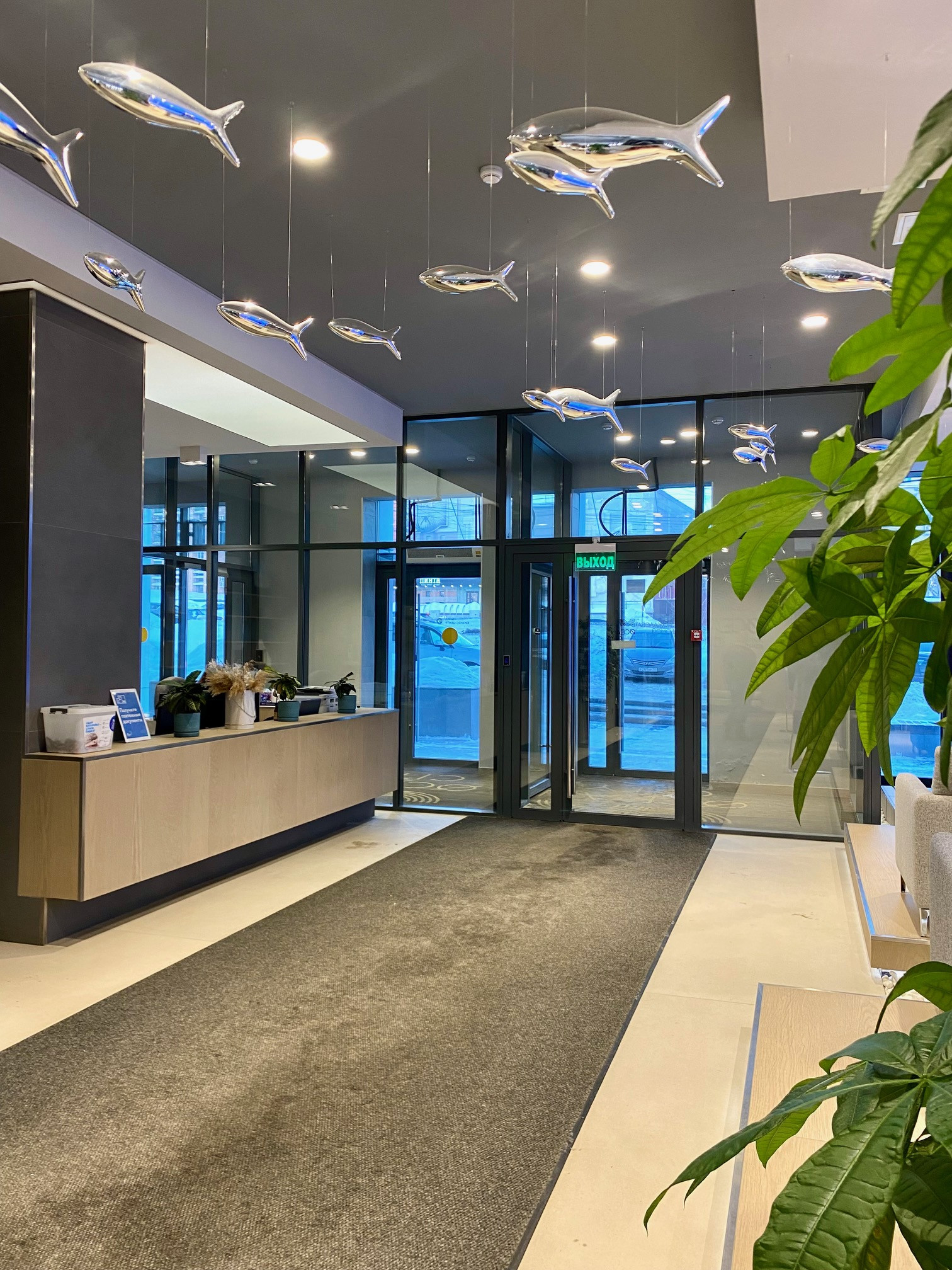 В красивейшем холле на первом этаже здания круглосуточно находится консьерж, также здесь