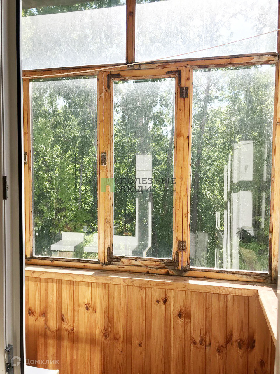 В квартире установлены пластиковые окна. Балкон застеклен деревом.