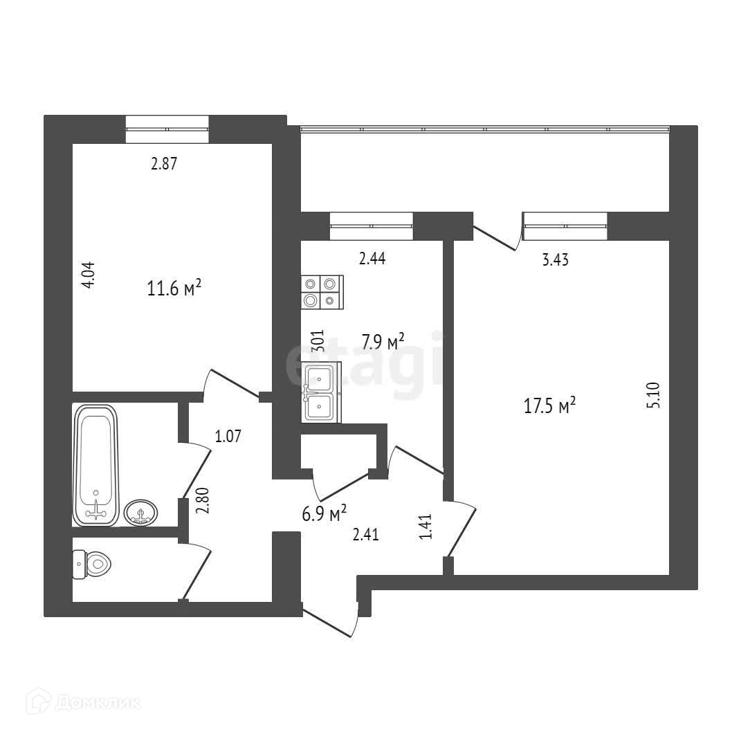 Общая площадь 48.2 м2