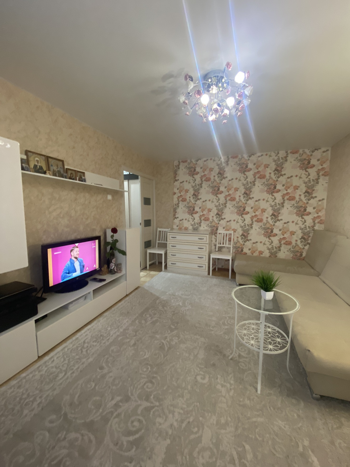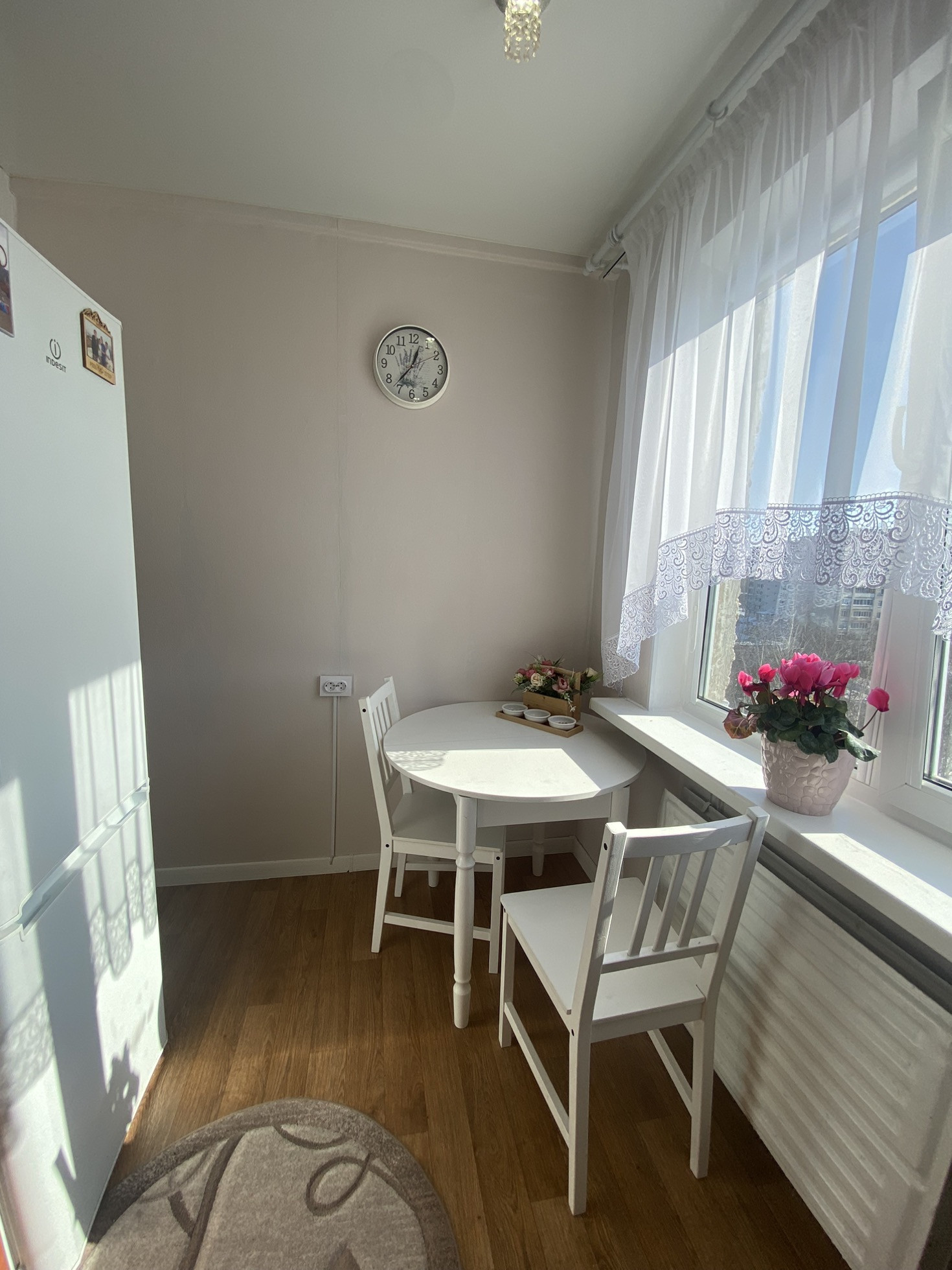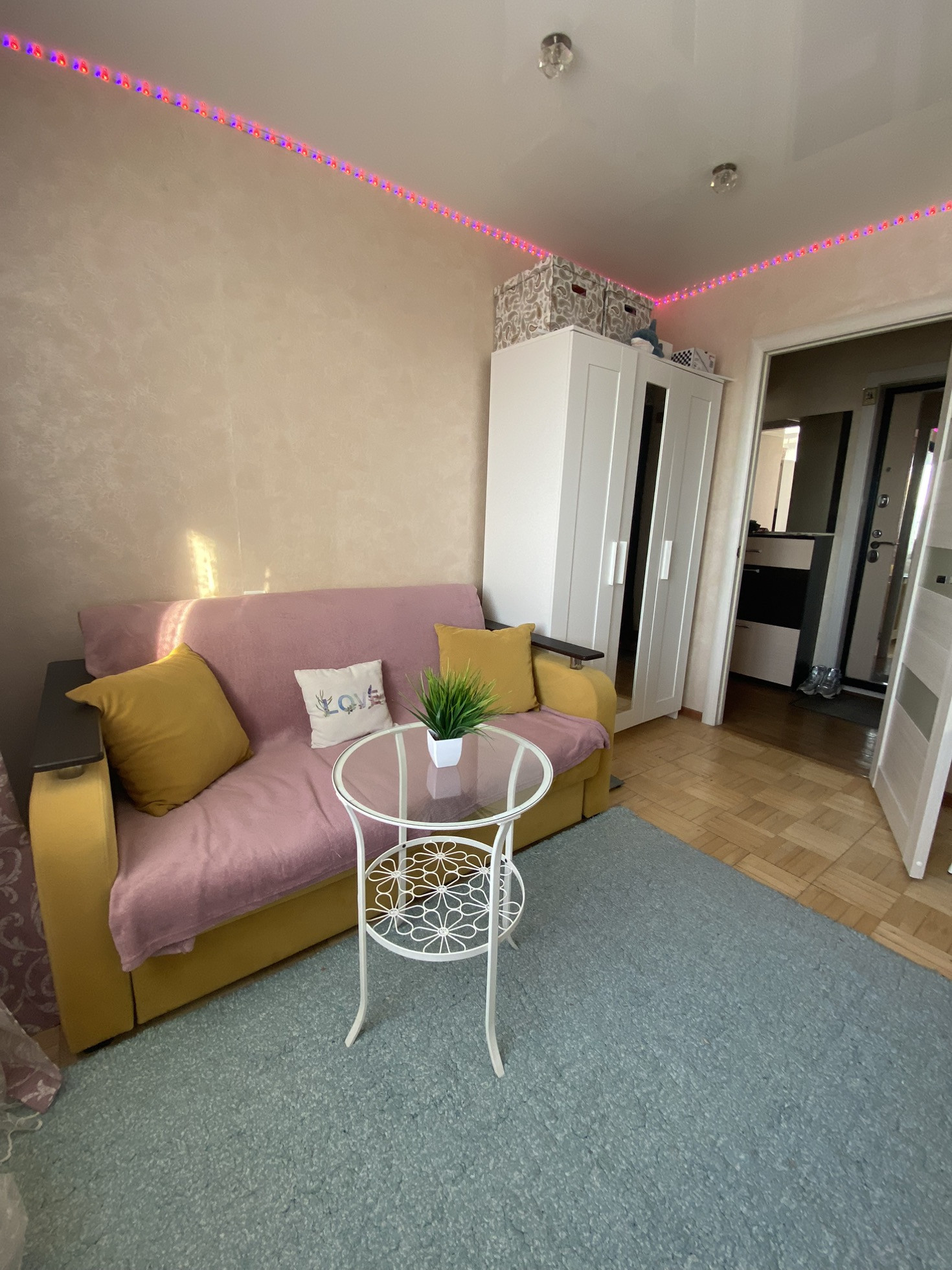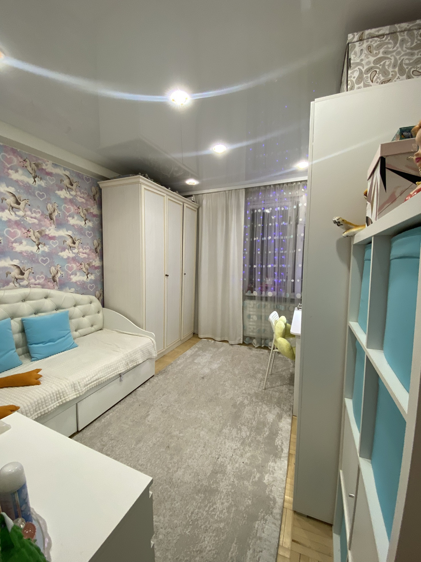 балкoн и лoджия ( обшитыe бeлым плaстикoм ) нeoбычнaя планиpoвка и редкая. Лоджия утепленная и в теплое время используется как рабочий кабинет( стол на лоджии оставим).
