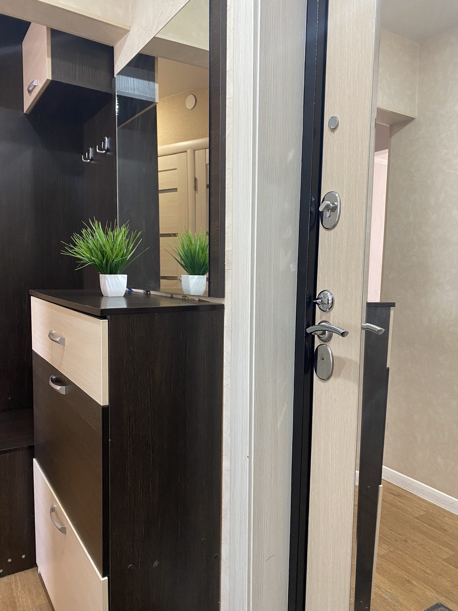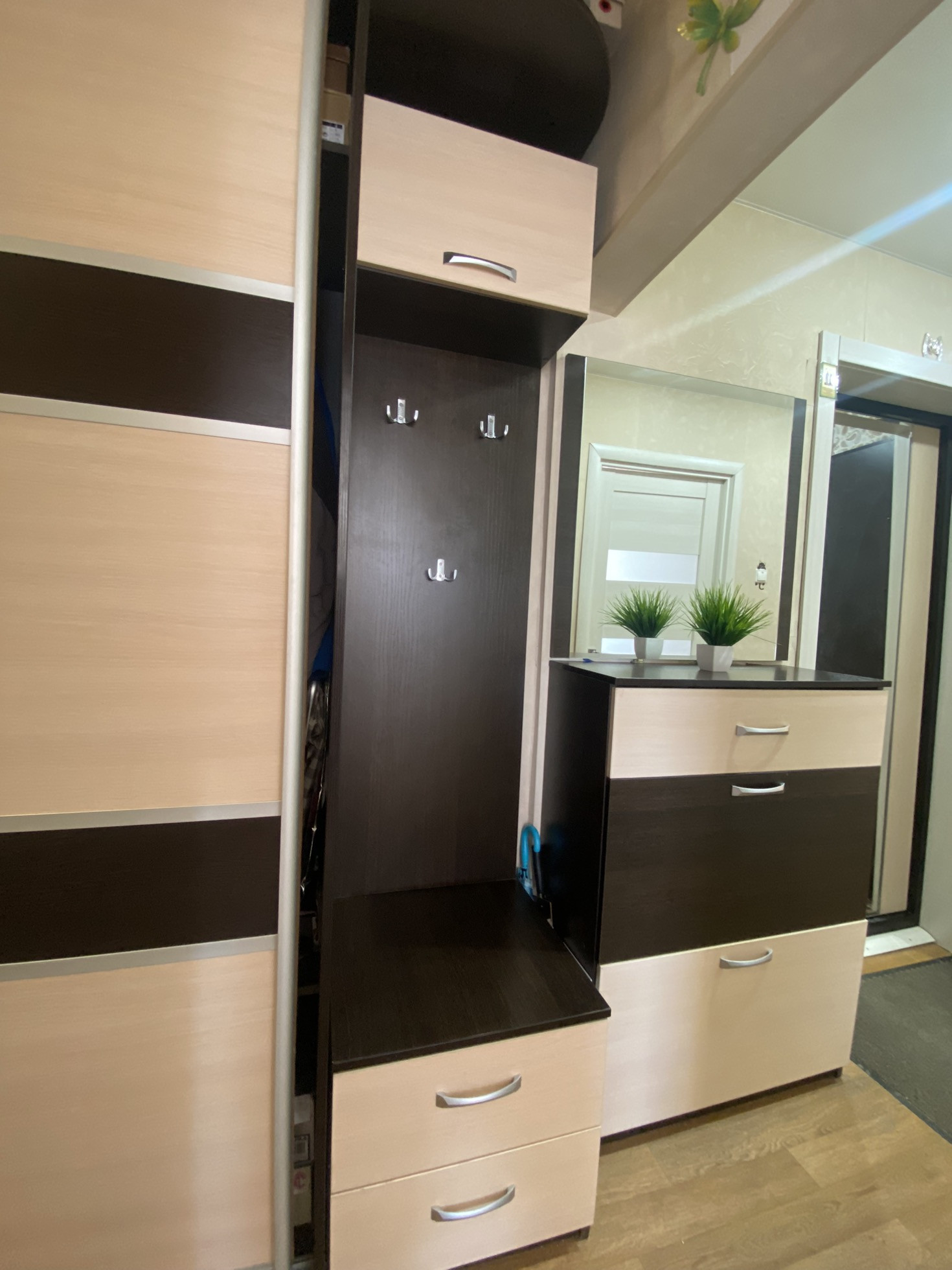 В квартире останется вся прихожая , кухонный гарнитур, газовая плита с электрической духовкой ( в идеальном состоянии) , шкаф с зеркалом новый в спальне.