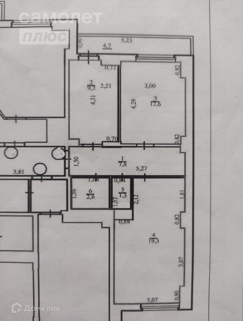 Общая площадь 52.8 м2
