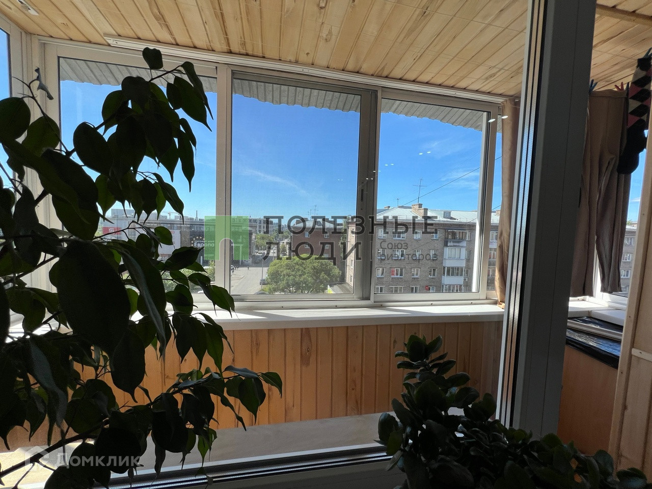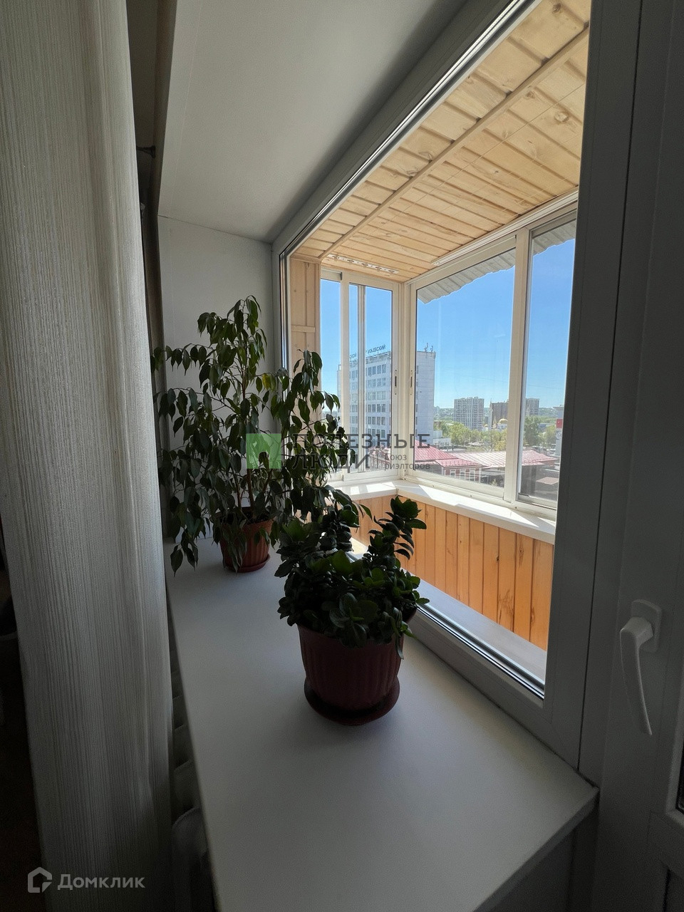 Окна пластиковые, балкон обшит "под дерево", пластиковые окна.