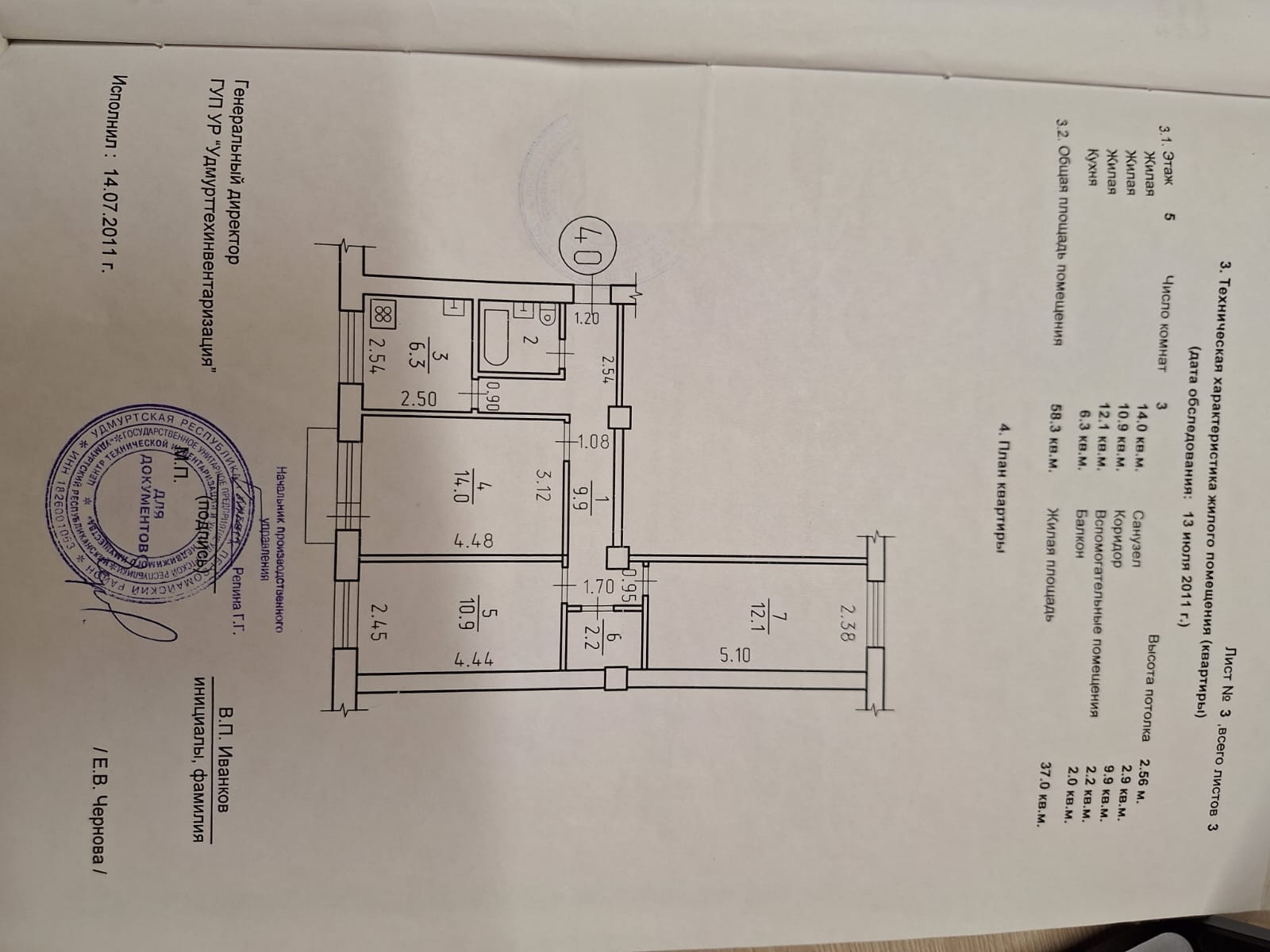 Общая площадь 58.3 м2