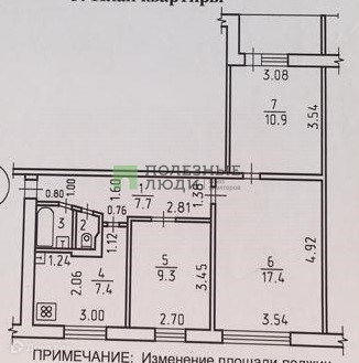 Общая площадь 55.6 м2