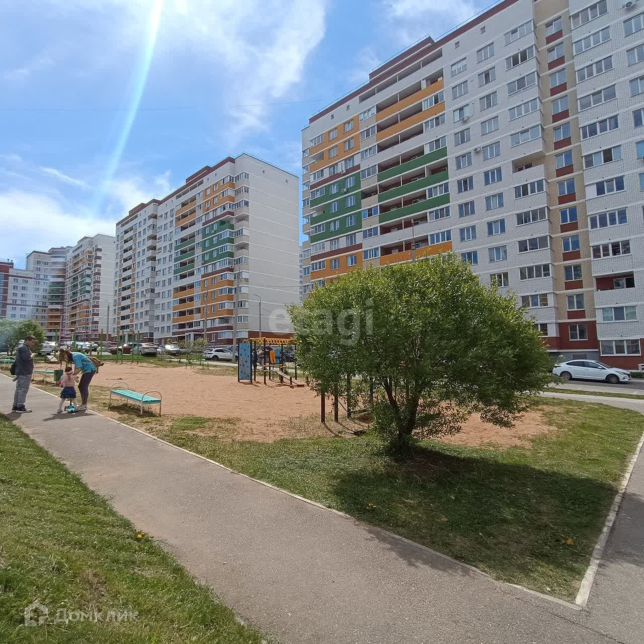 Двор благоустроен для детей, с площадками для игр и занятий спортом.