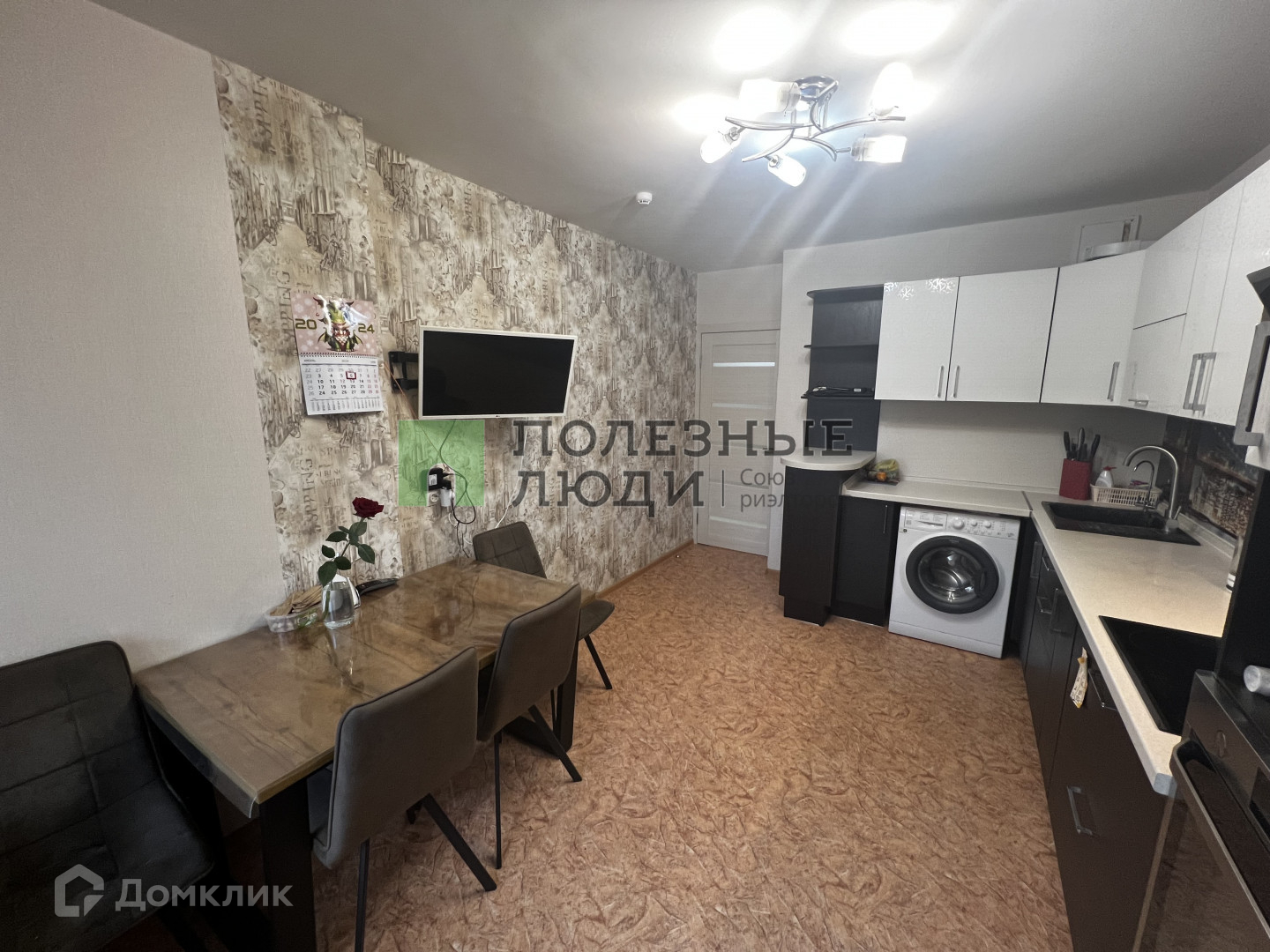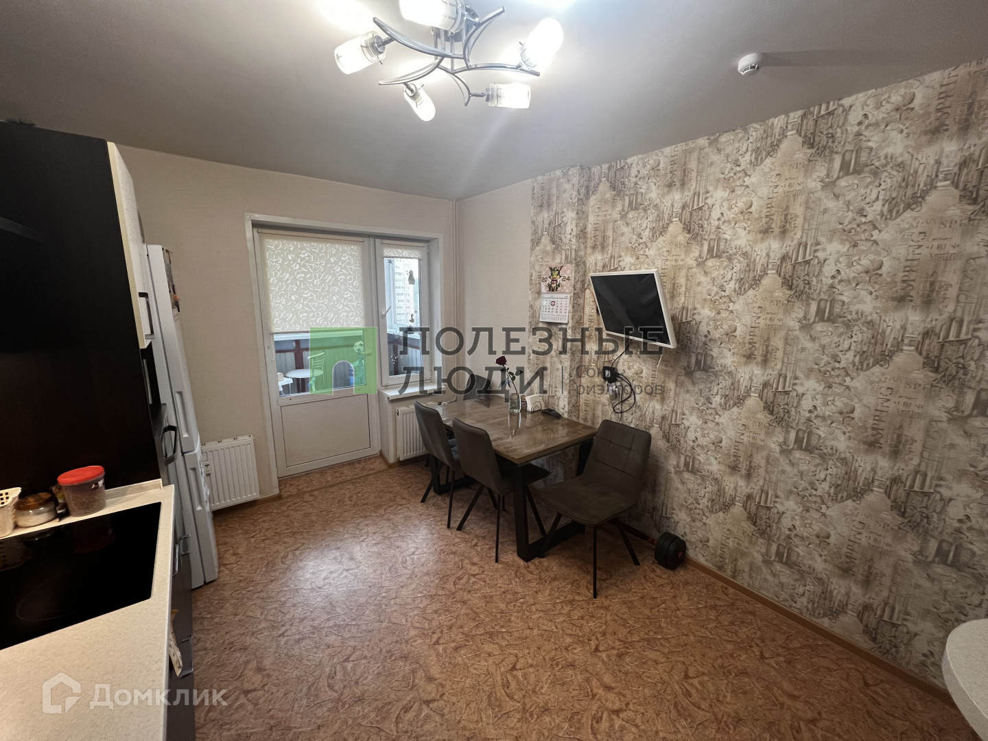 Оставляем кухонный гарнитур и стенку в комнате.