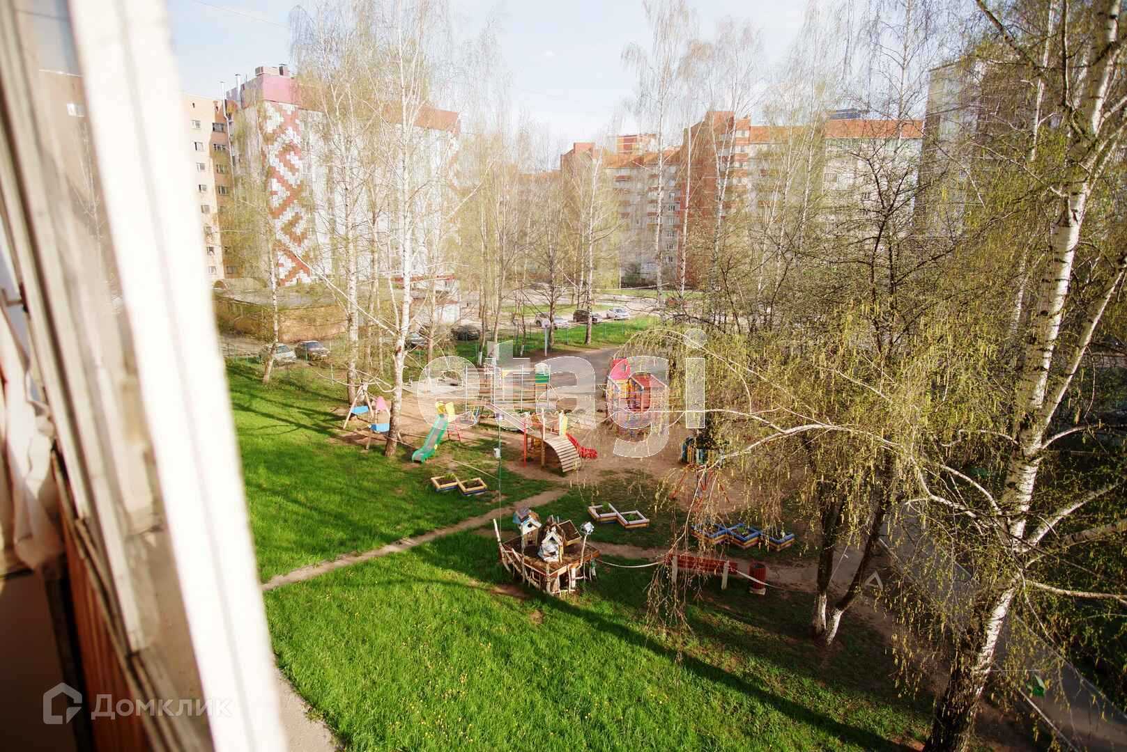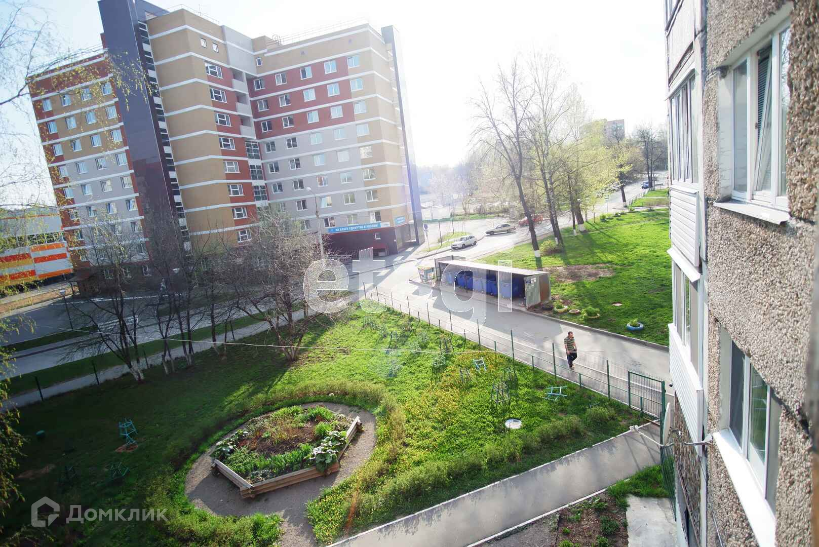 Окна выходят во двор. Двор огороженный шлагбаумом.