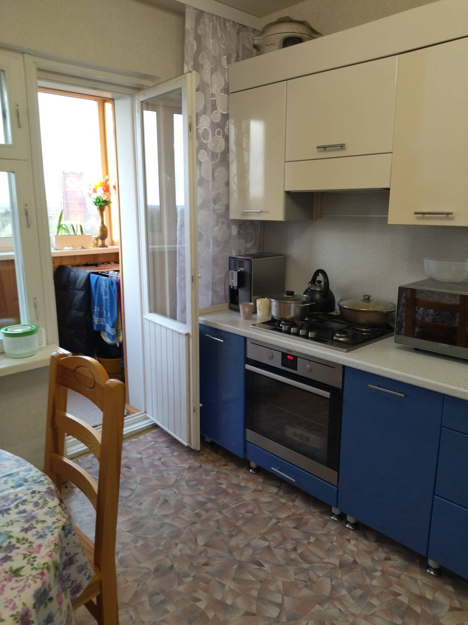 Лоджия застекленная и утепленная ,есть огромная гардеробная.