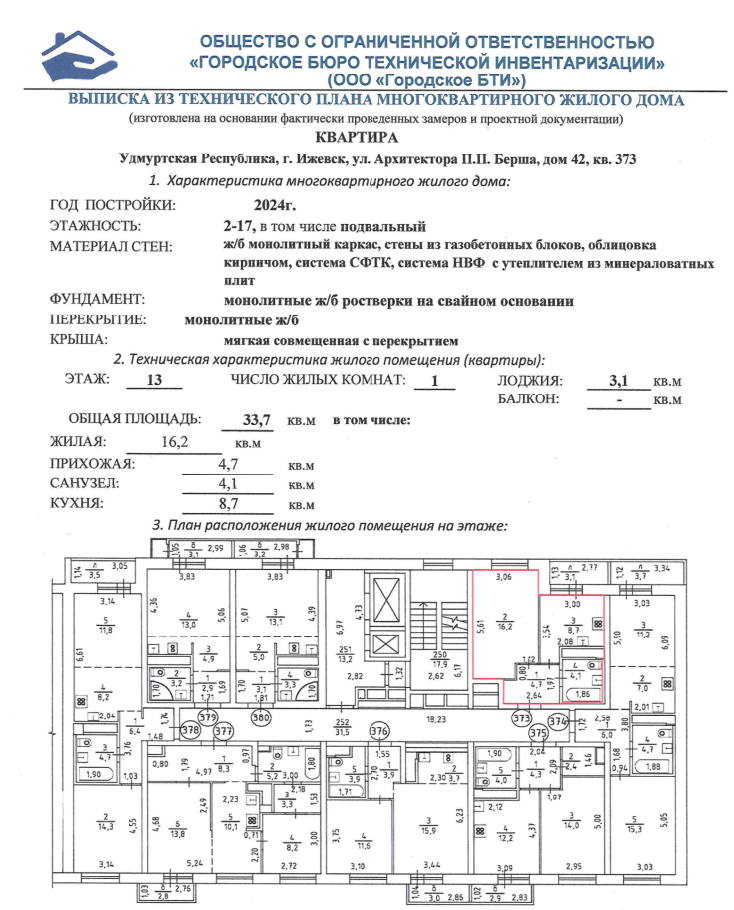 1-комнатная квартира, 33.7 м2, этаж 13 / 16, на продажу в Ижевске, улица Архитектора П.П. Берша, 42
