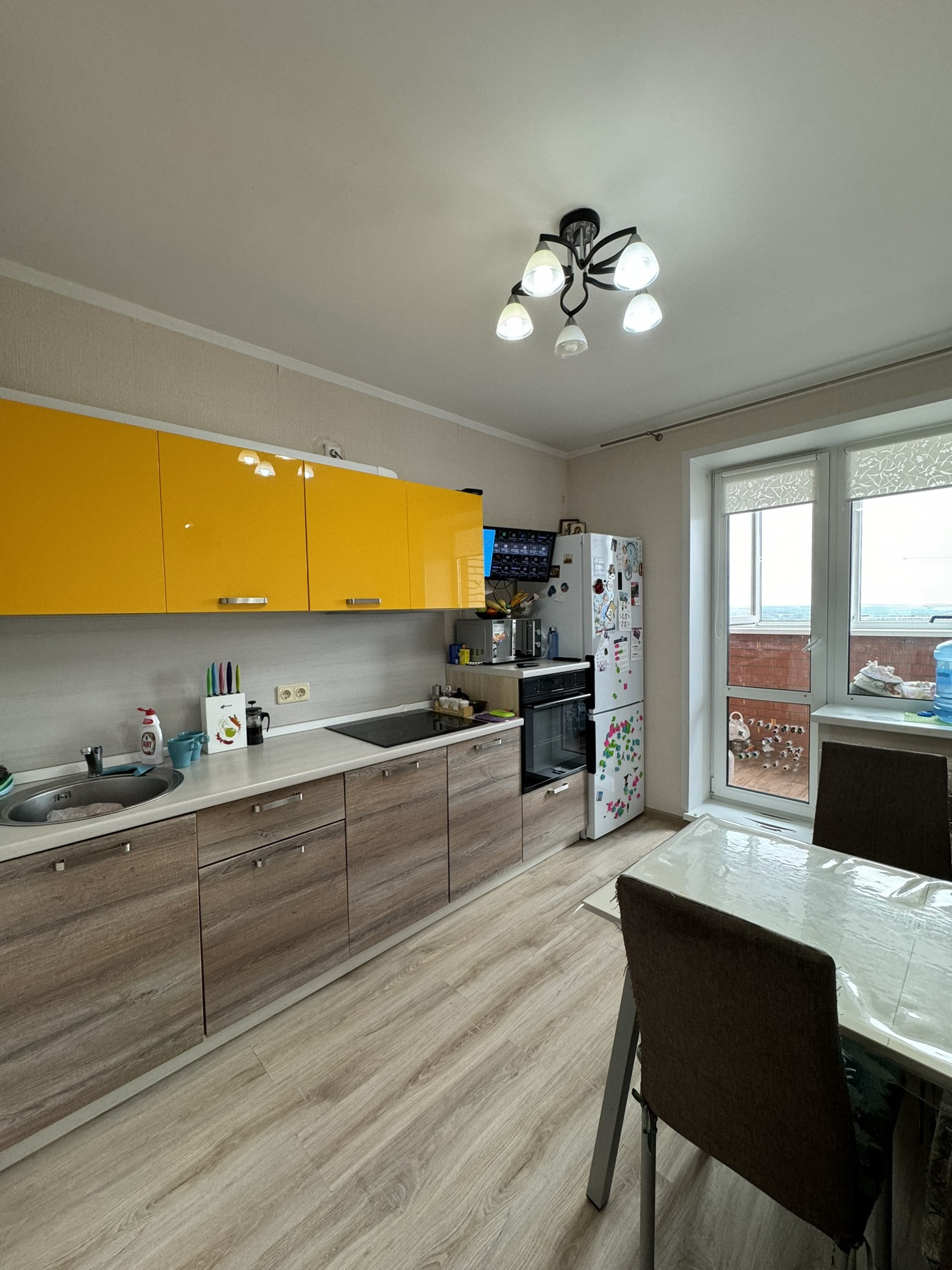 Светлая уютная квартира в хорошем состоянии. Установлена новая металлическая входная дверь. На полу ламинат, отделка в светлых тонах. Бонусом остается кухонный гарнитур.