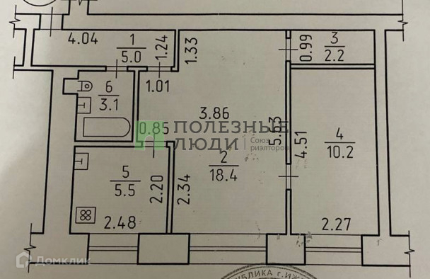 Жилая площадь 28.6 м2