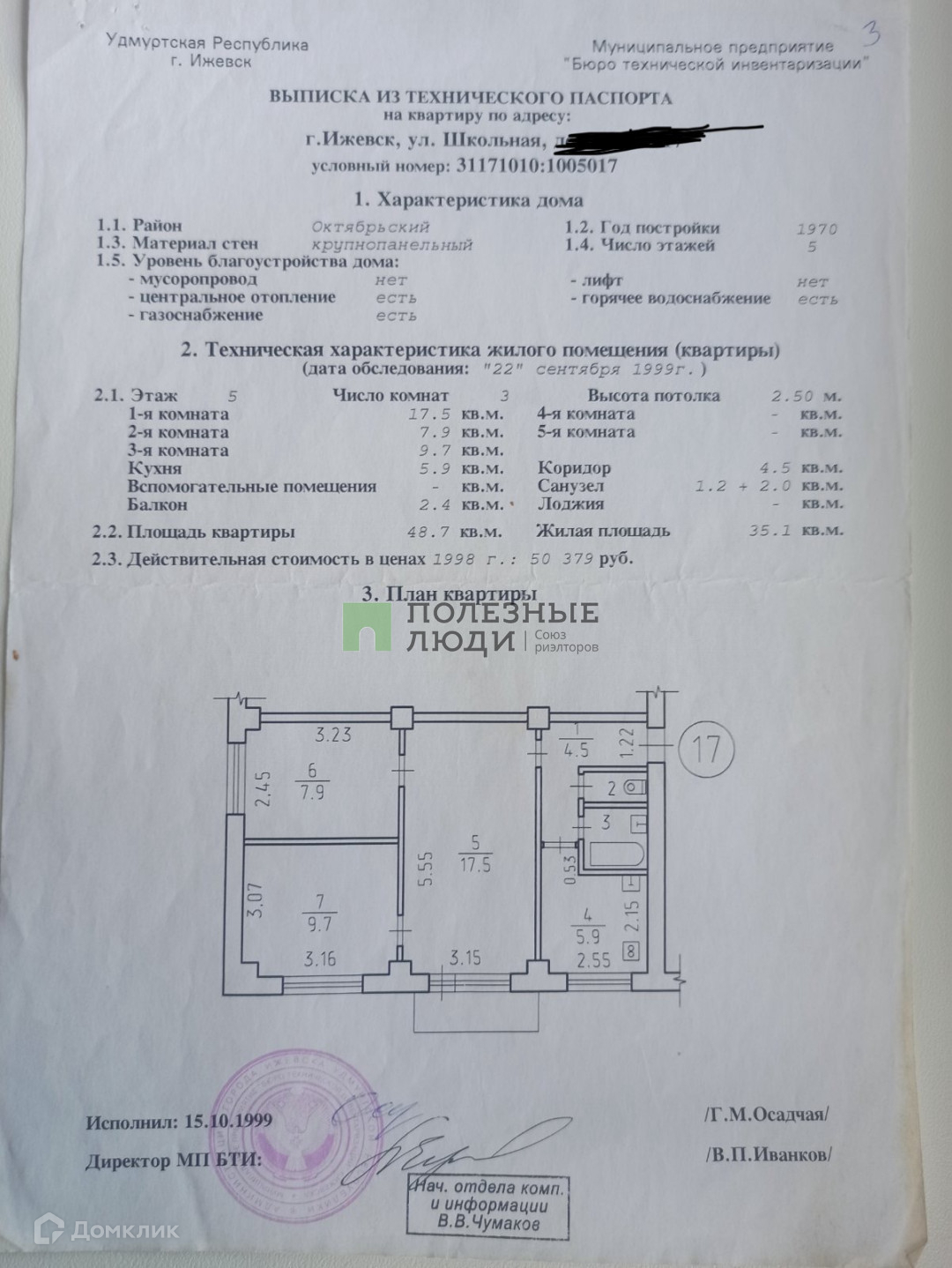 3-комнатная квартира, 48 м2, этаж 5 / 5, на продажу в Ижевске, Школьная улица, 62
