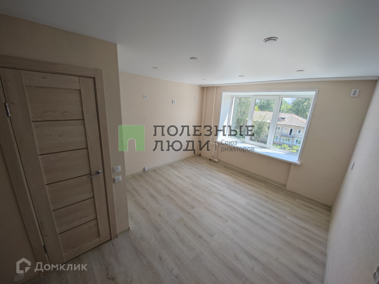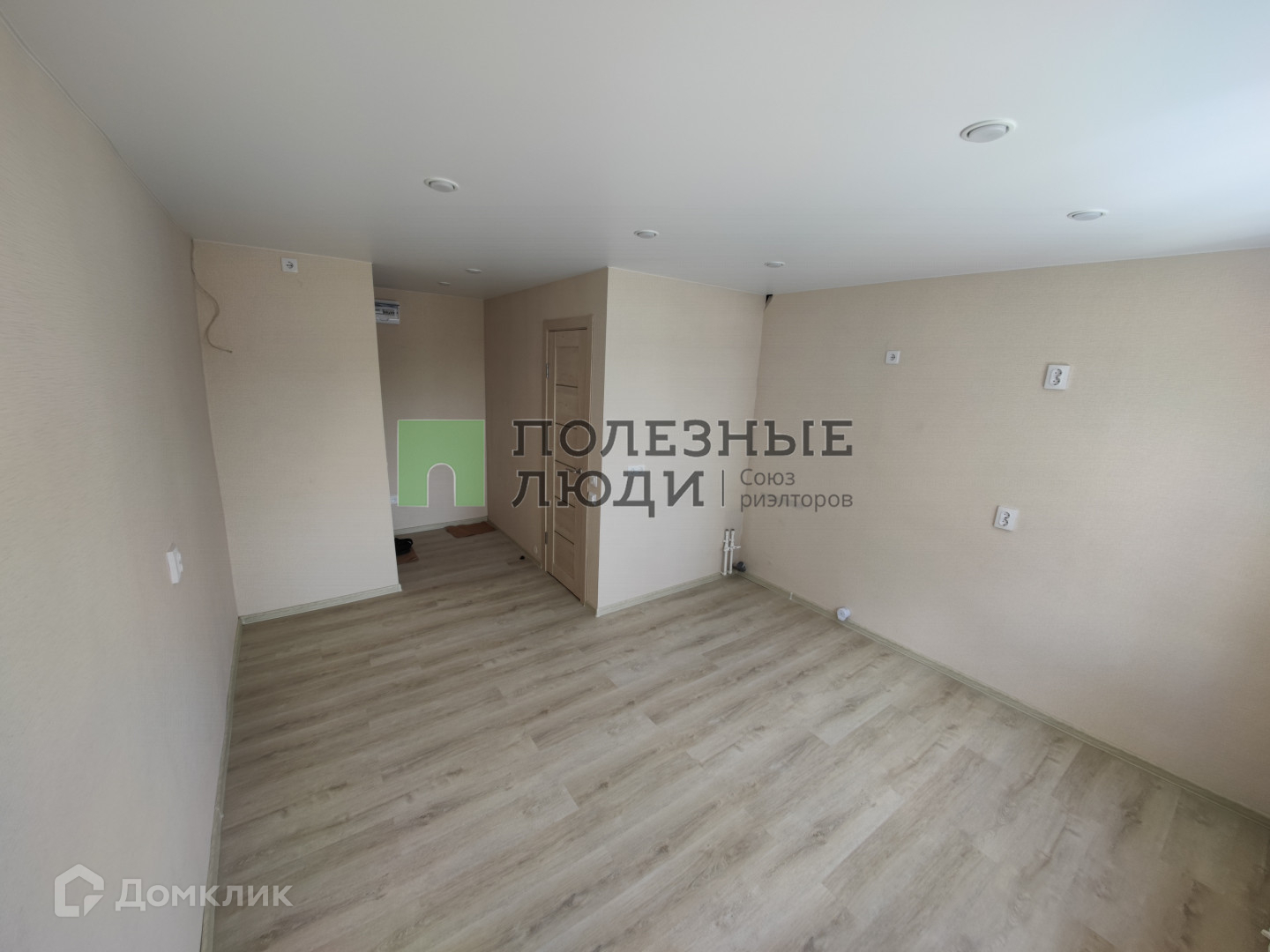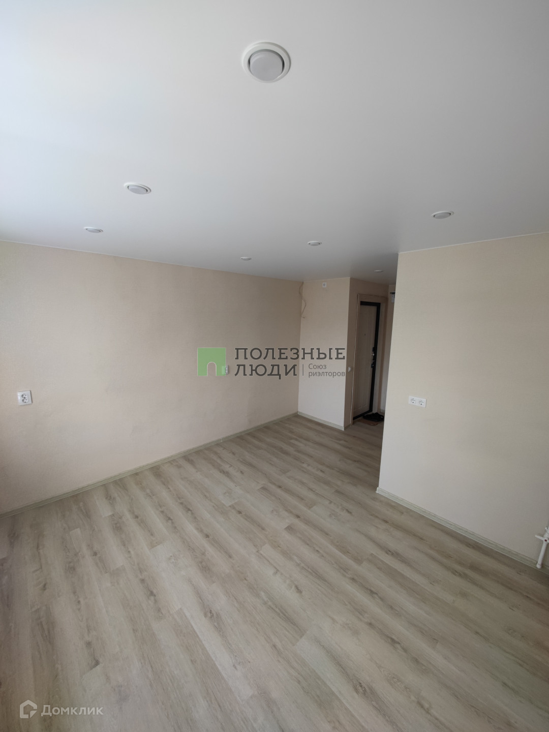 На полу уложен кварцвинил замковый 42 класса прочности светлых тонов.