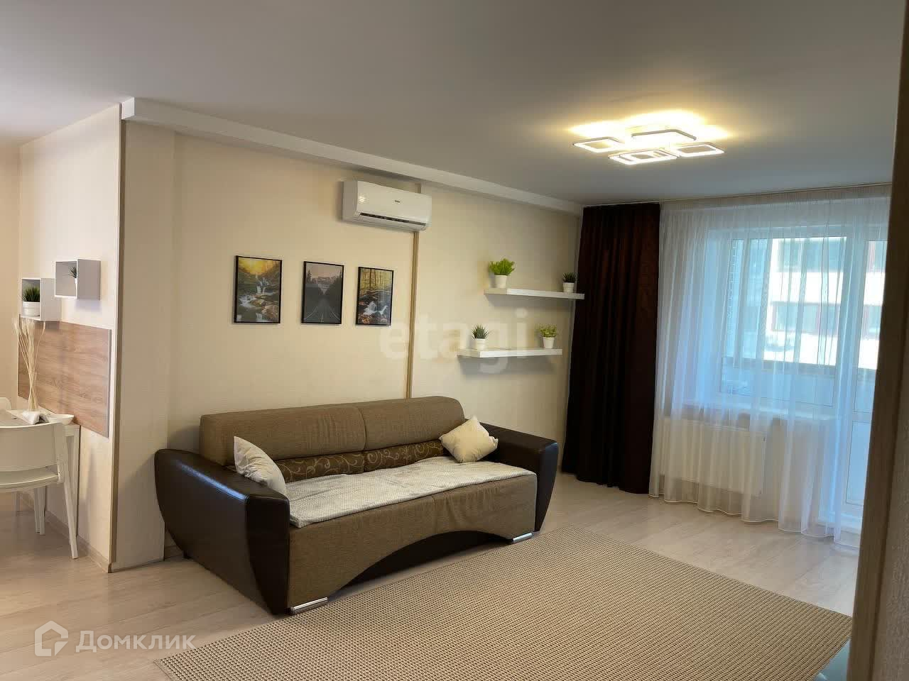 В квартире сделан качественный косметический ремонт: поклеены обои, стоят пластиковые окна, мокрые зоны в ванной комнате и санузле в плитке, новая мебель и техника.