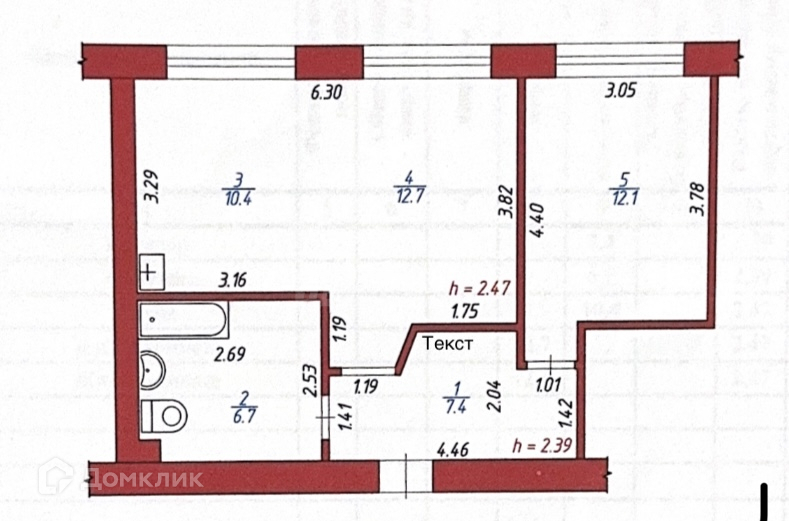 Общая площадь 49.3 м2