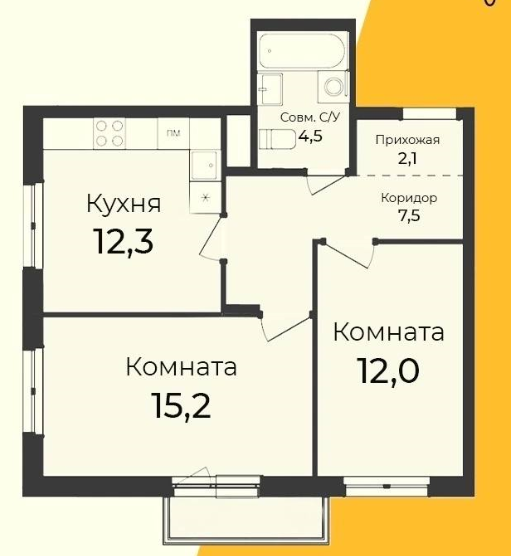 Площадь кухни 12.3 м2