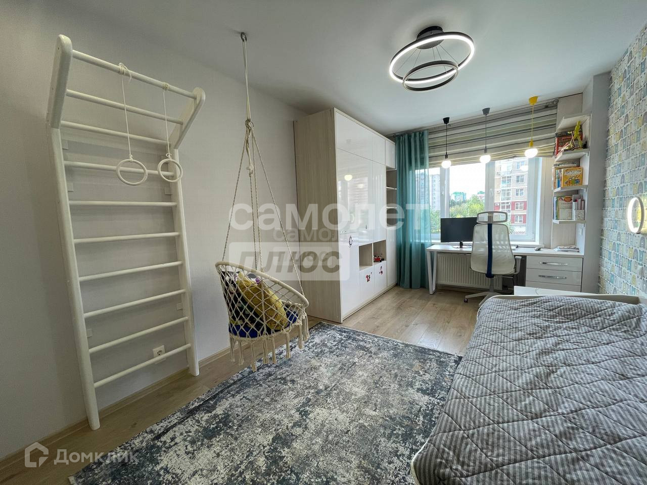 Спальные комнаты изолированные по 15 кв.м. В детской спальне  правильно выполнено зонирование, рабочее пространство и зона отдыха с собственным скалодромом.