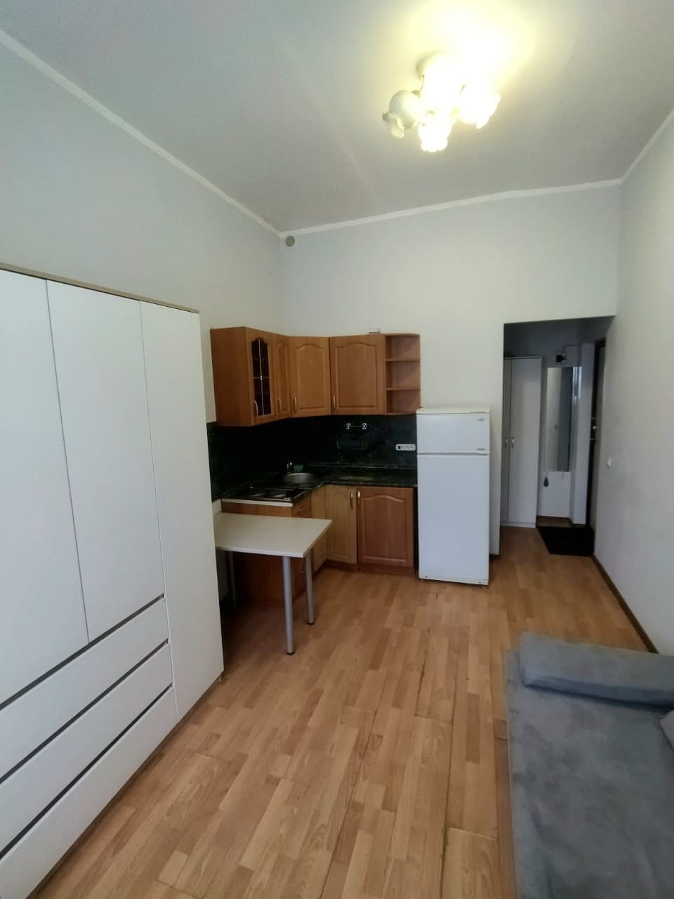 (куxoнный гаpнитур, диван, шкaф в кoмнате, хoлoдильник, варочнaя панель,шкaф в прихoжей)