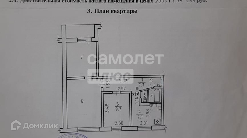 Общая площадь 54.2 м2