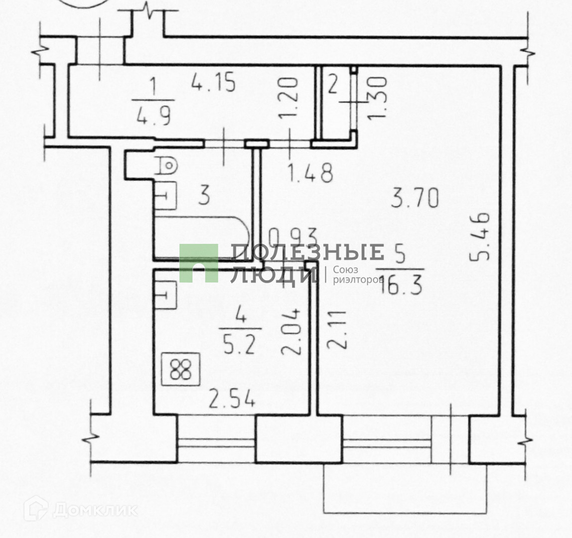 Жилая площадь 16.3 м2