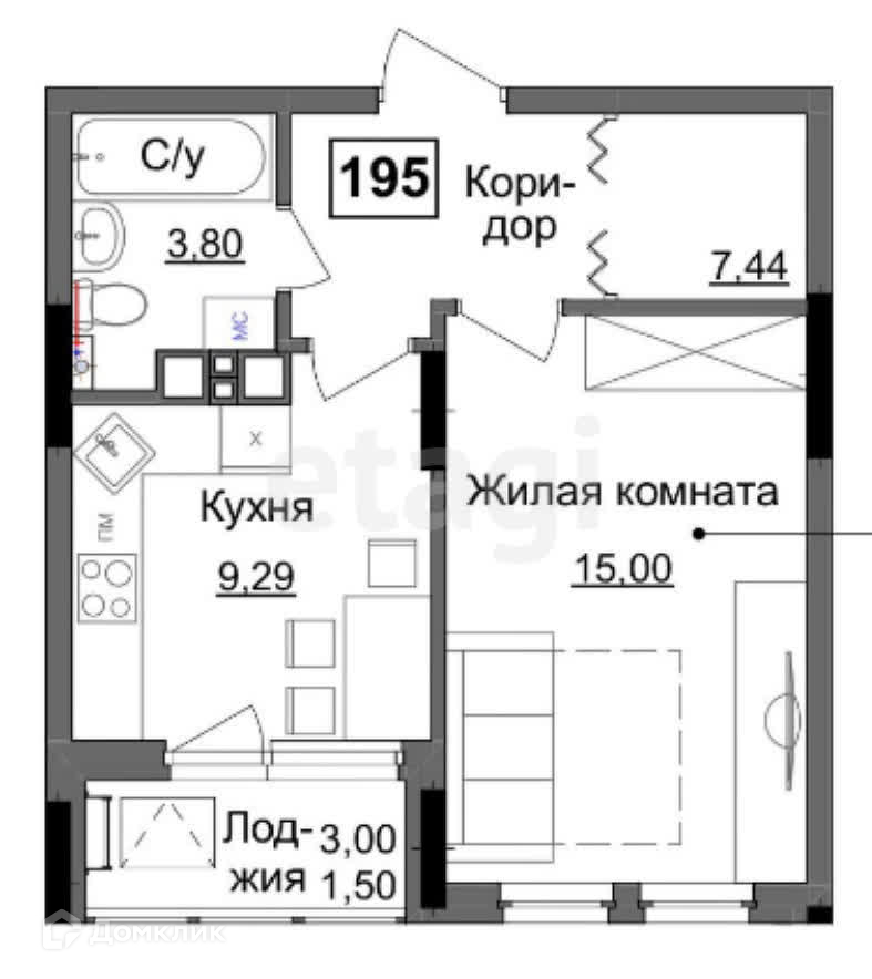 -Квартира площадью 35,53 кв. м. с отличными видовыми характеристиками.