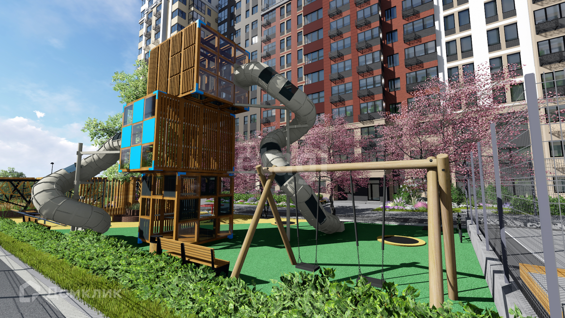 -Во дворе детская и спортивная площадка.