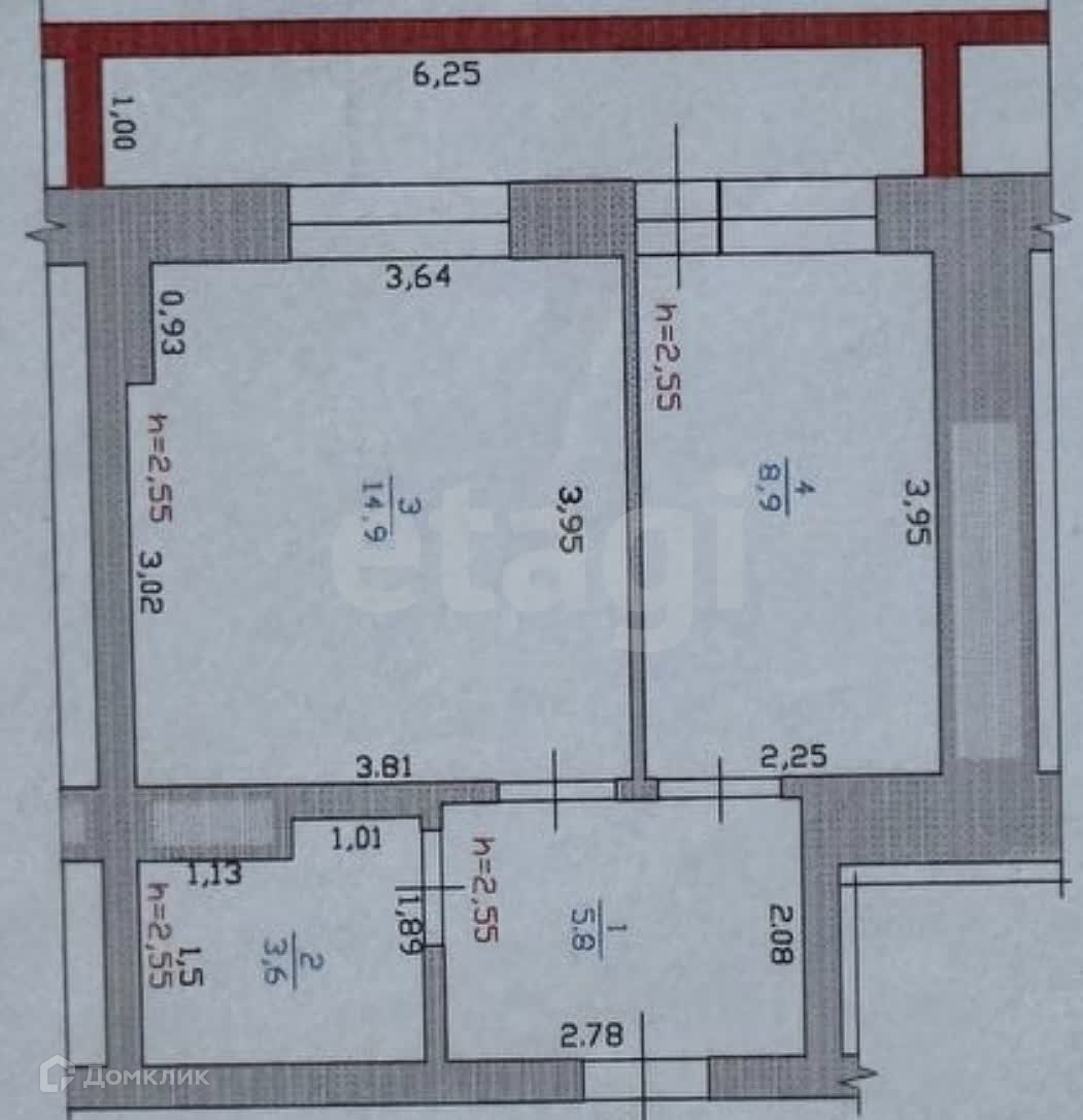 Общая площадь 39.45 м2