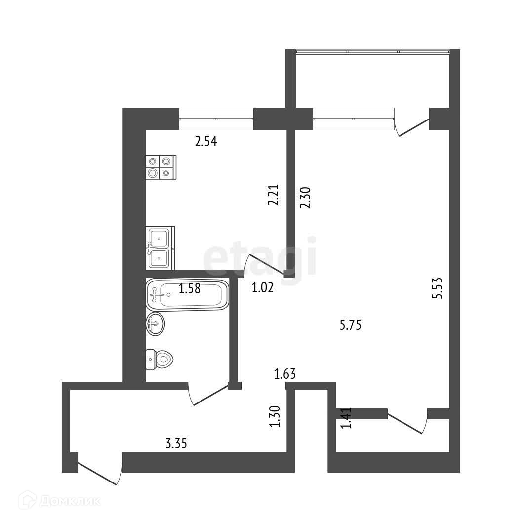 Балкон, лоджия 1 балкон
